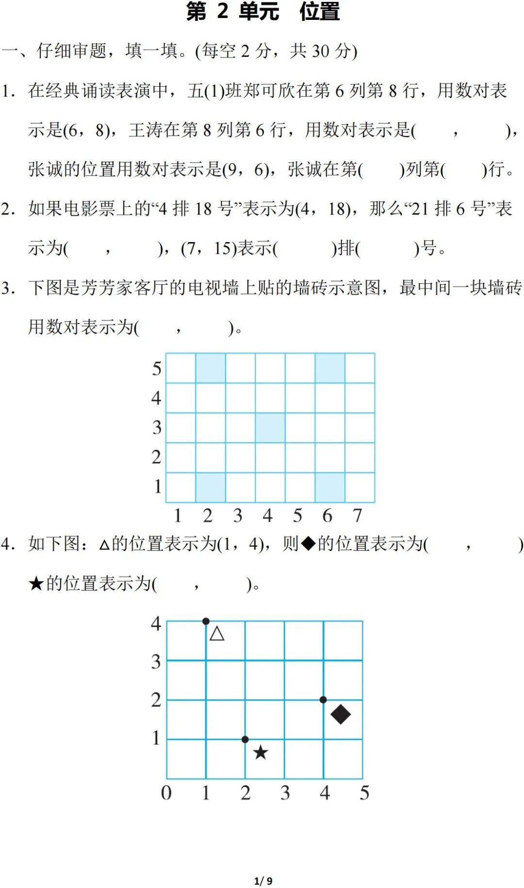人教版数学五年级(上册)第二单元测试题,可打印!