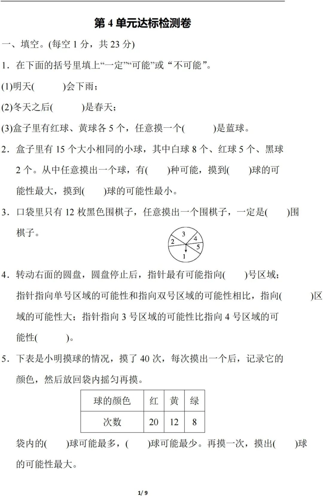 人教版数学五年级(上册)第四单元测试题,可打印!