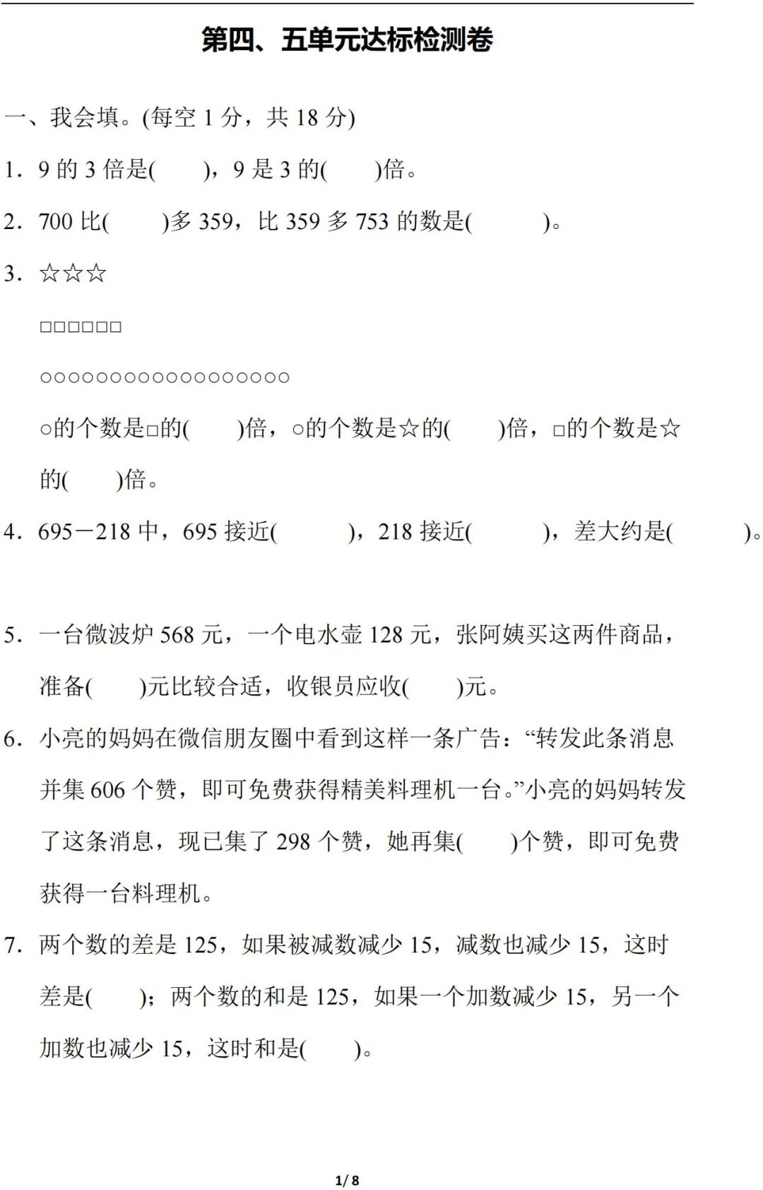 为了让孩子能更好的巩固第五单元的知识点,话筒君特意为大家,精心整理了人教版数学(上册)第五单元测试题、试卷,建议各位老师和家长领取,打印给孩子练习!