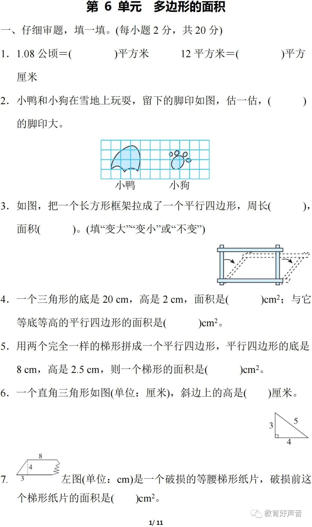 为了让孩子能更好的巩固第六单元的知识点,话筒君特意为大家,精心整理了人教版数学(上册)第六单元测试题、试卷,建议各位老师和家长领取,打印给孩子练习!