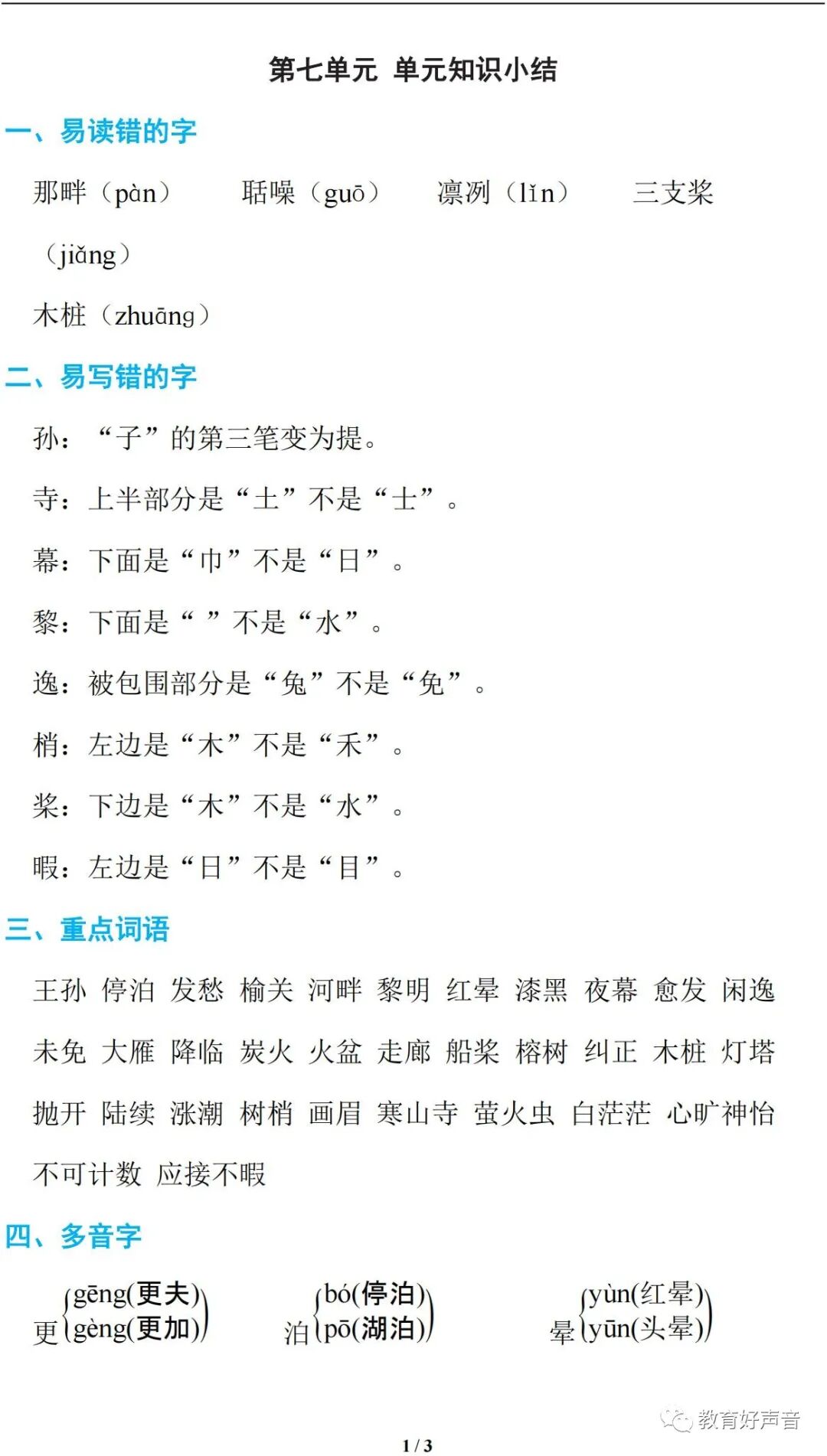 为了让孩子能更好的巩固第七单元的知识点,耿老师特意为大家,精心整理了第六单元知识小结,建议各位老师和家长领取,打印给孩子练习!(欢迎转发到班级群)