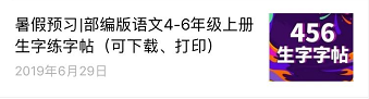 话筒君前几天分享给各位家长和老师的,部编版小学语文生字练字帖,带拼音、笔顺,大家非常喜欢。后台下载率很高。放暑假了,家长们都想让孩子抽空练练字,顺便巩固一下生字和生词。