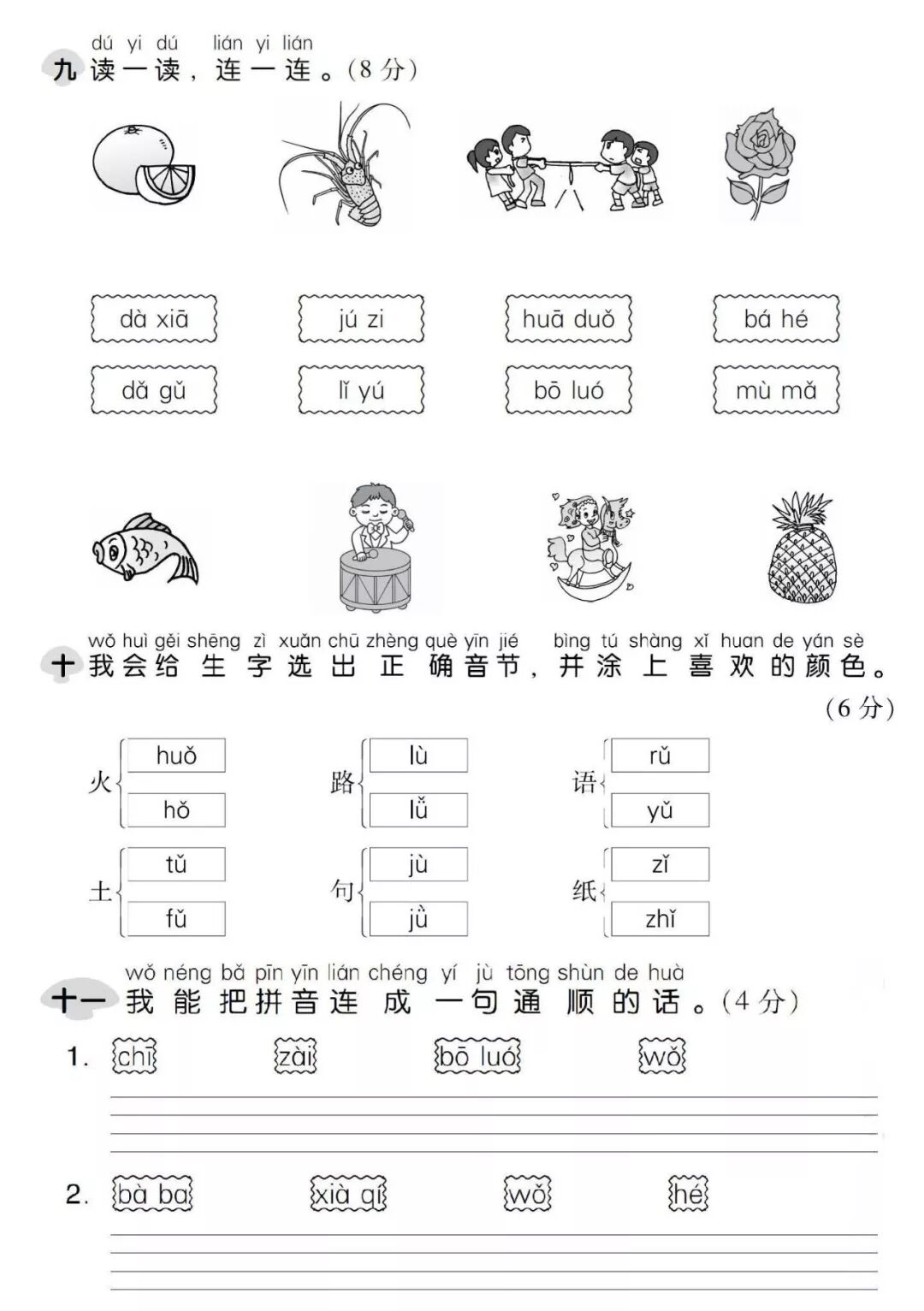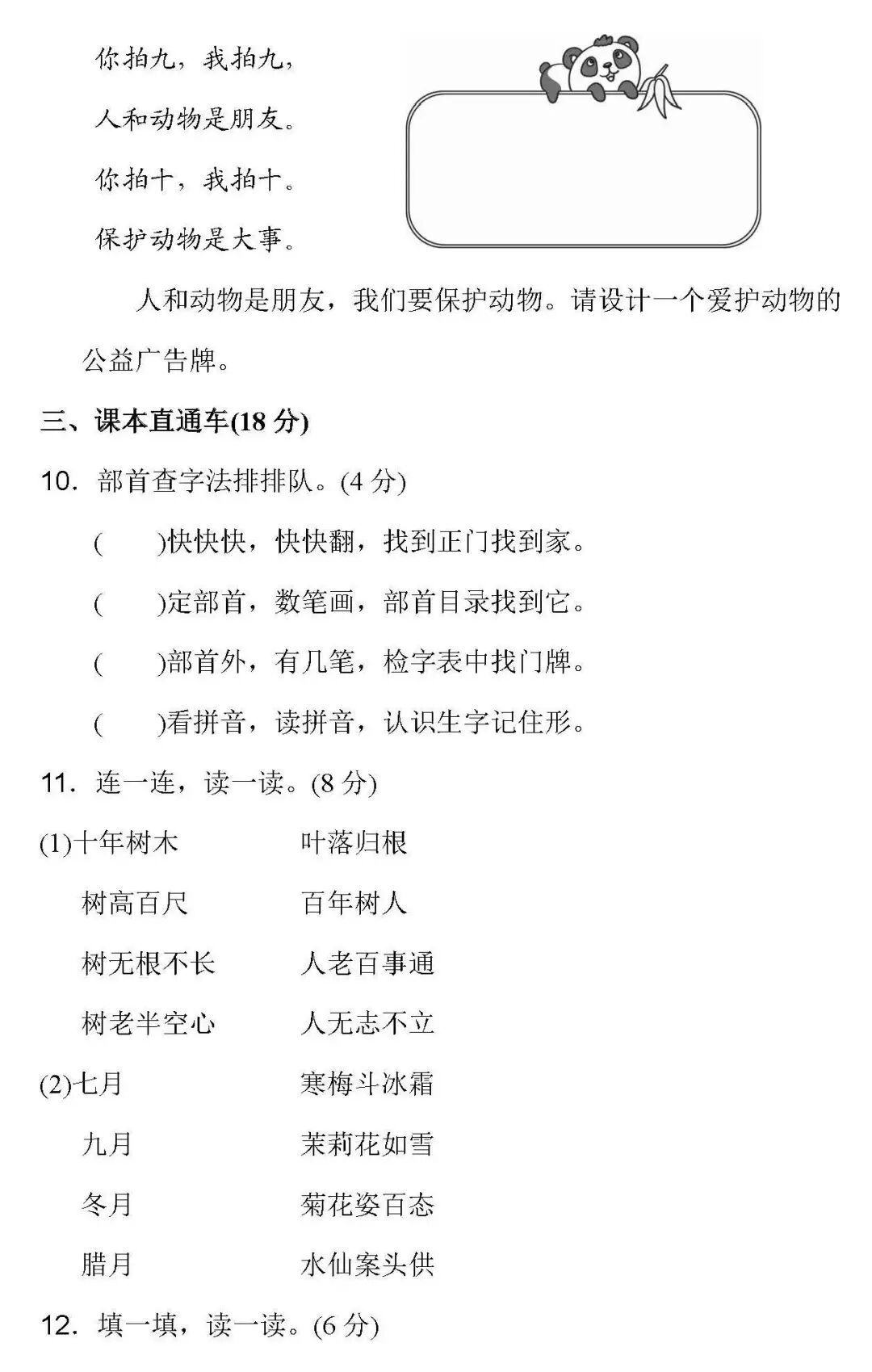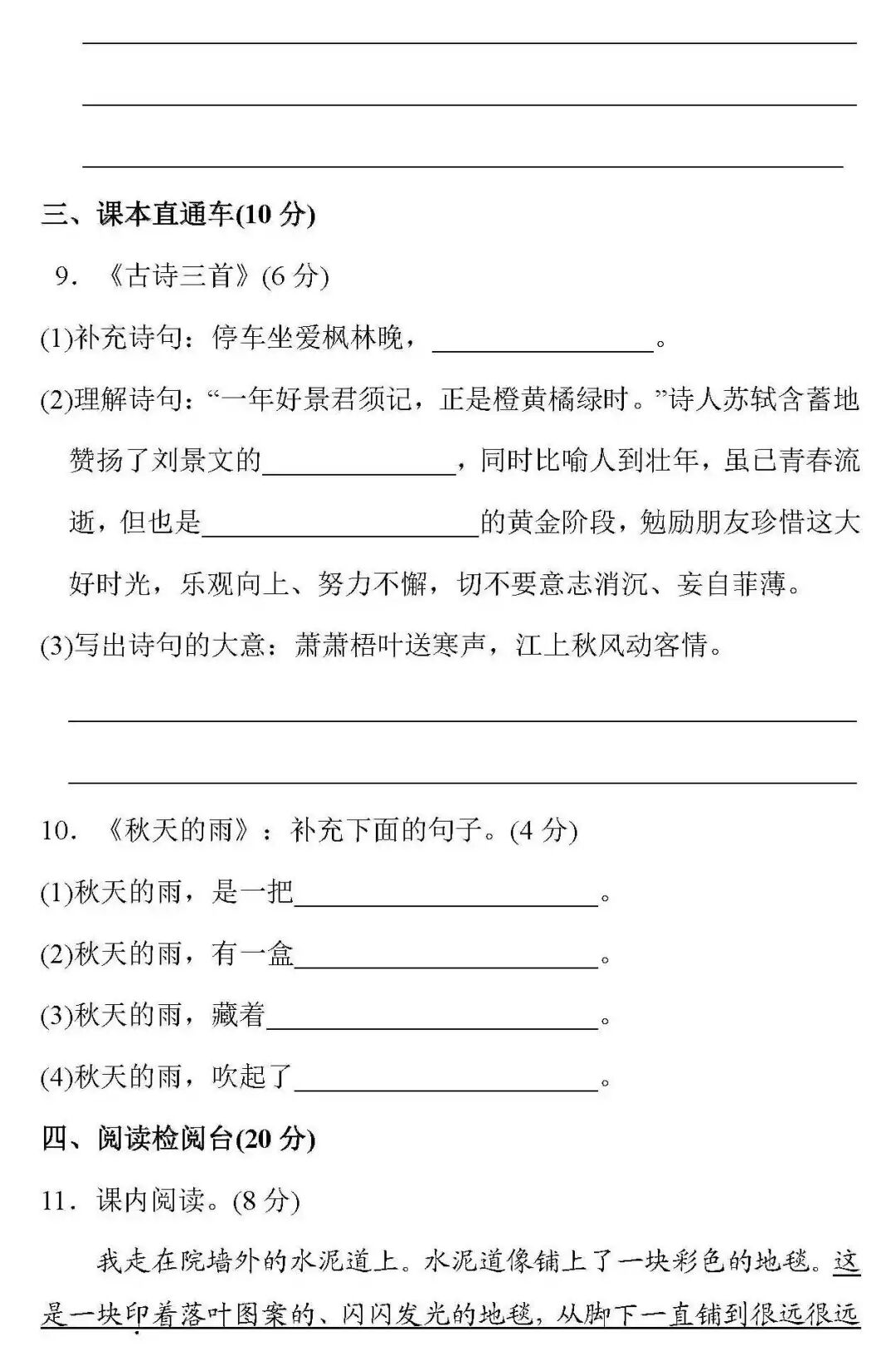 【参考答案 】部编版1-6年级语文上第一单元课内阅读题