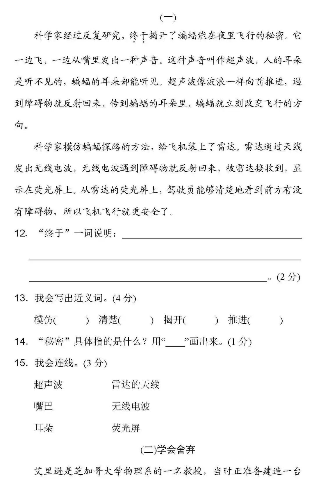 后台发送“二单元试卷”