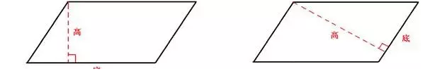 6、从平行四边形一条边上的一点向对边引一条垂线,这点和垂足之间的线段叫做平行四边形的高,垂足所在的边叫做平行四边形的底。