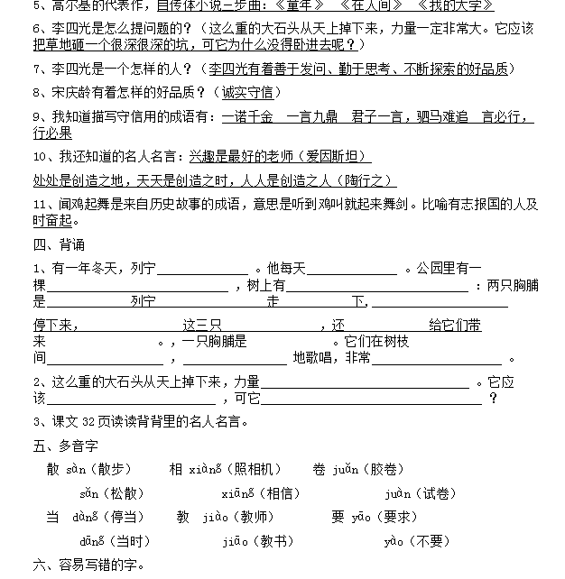 人教版1-6年级语文(上册)期末总复习PPT