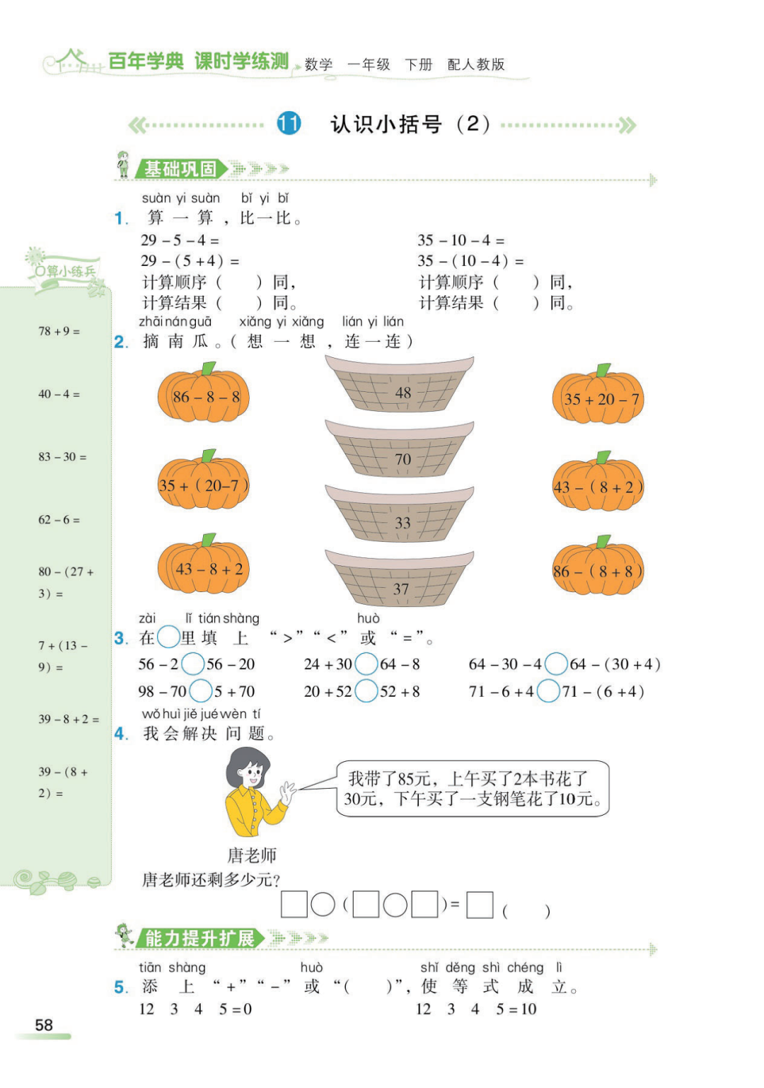 今天,话筒君老师给大家分享人教版数学一年级下册1-8单元精编版的课时练,有需要的家长,可以领取电子版打印给孩子做一做,巩固知识点!