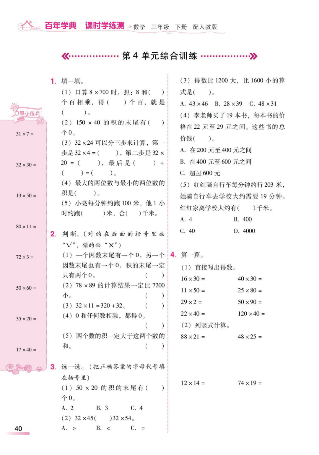 人教三下数学1-8单元课时练