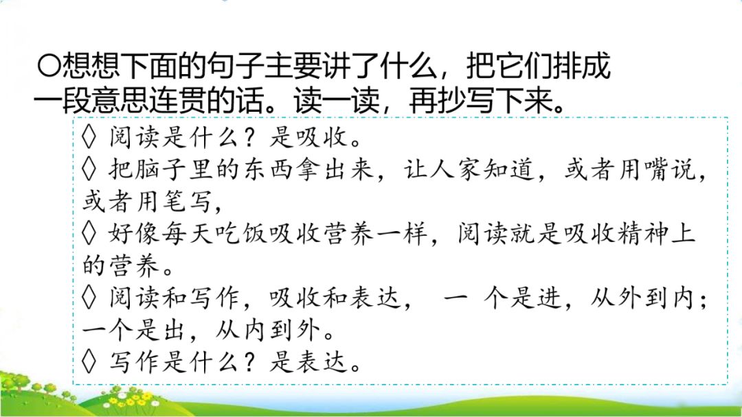 3、联系自己的读书体会,说说课文中哪些内容对你有启发。