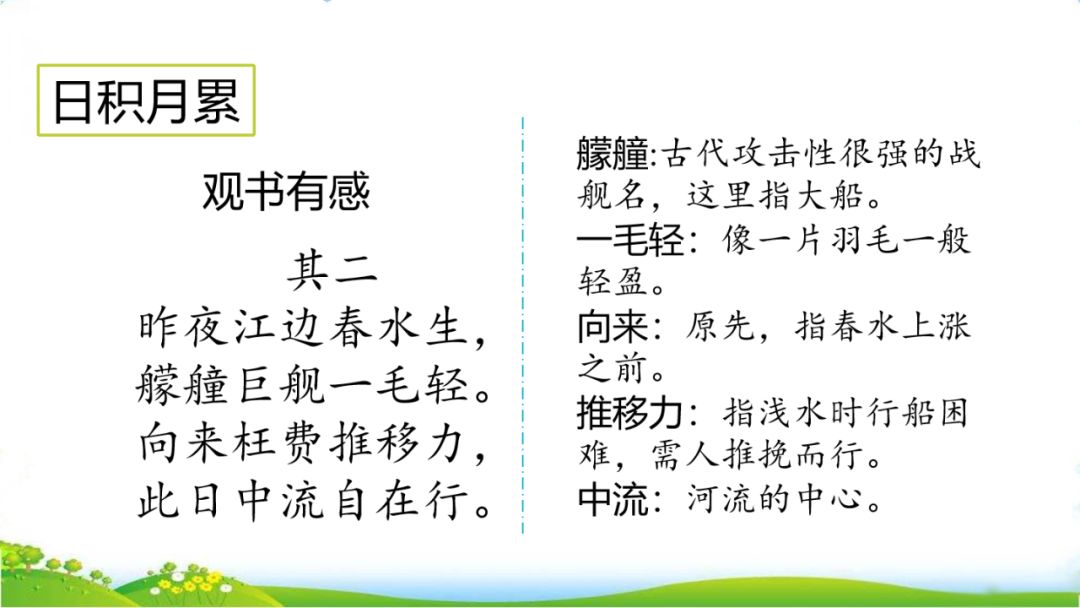 2、借助注释,用自己的话说说课文的大意。