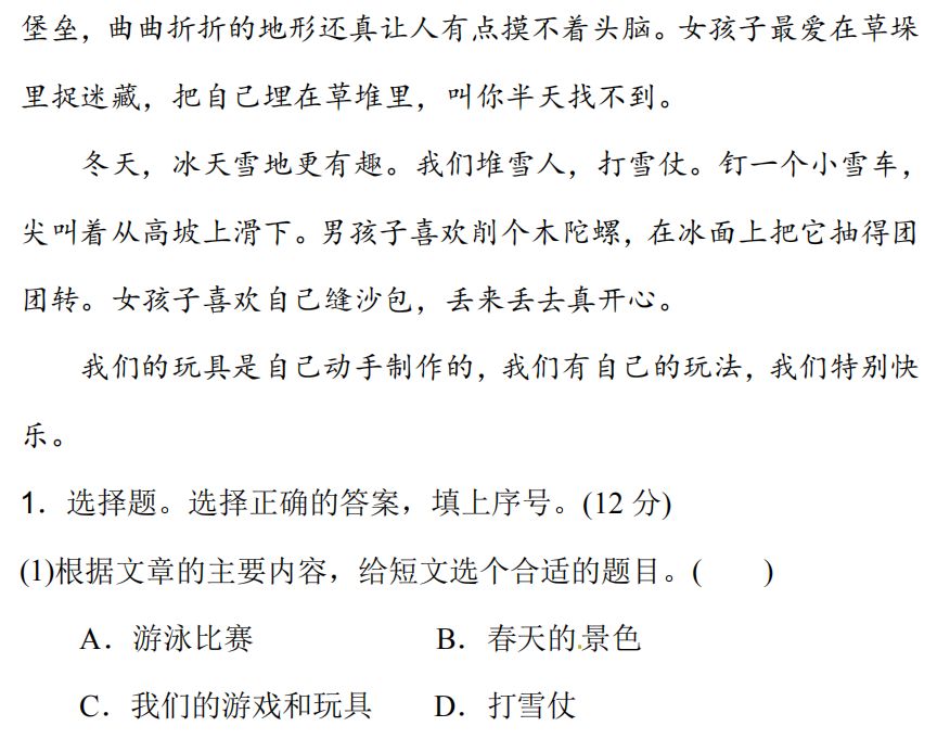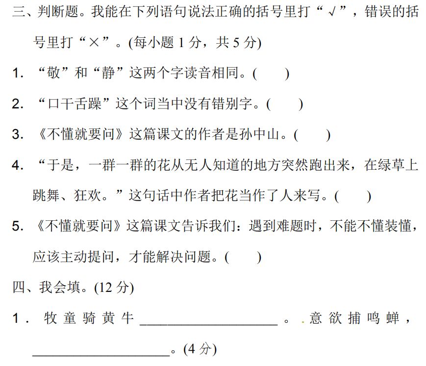 统编版语文三年级(上册)第一单元试卷4套,可打印