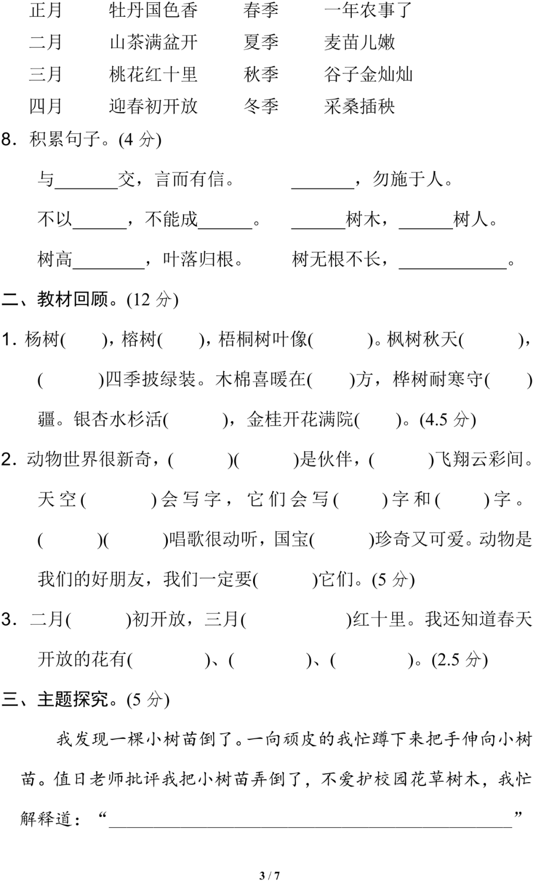 ☞语文三年级(上)第一单元试卷4套