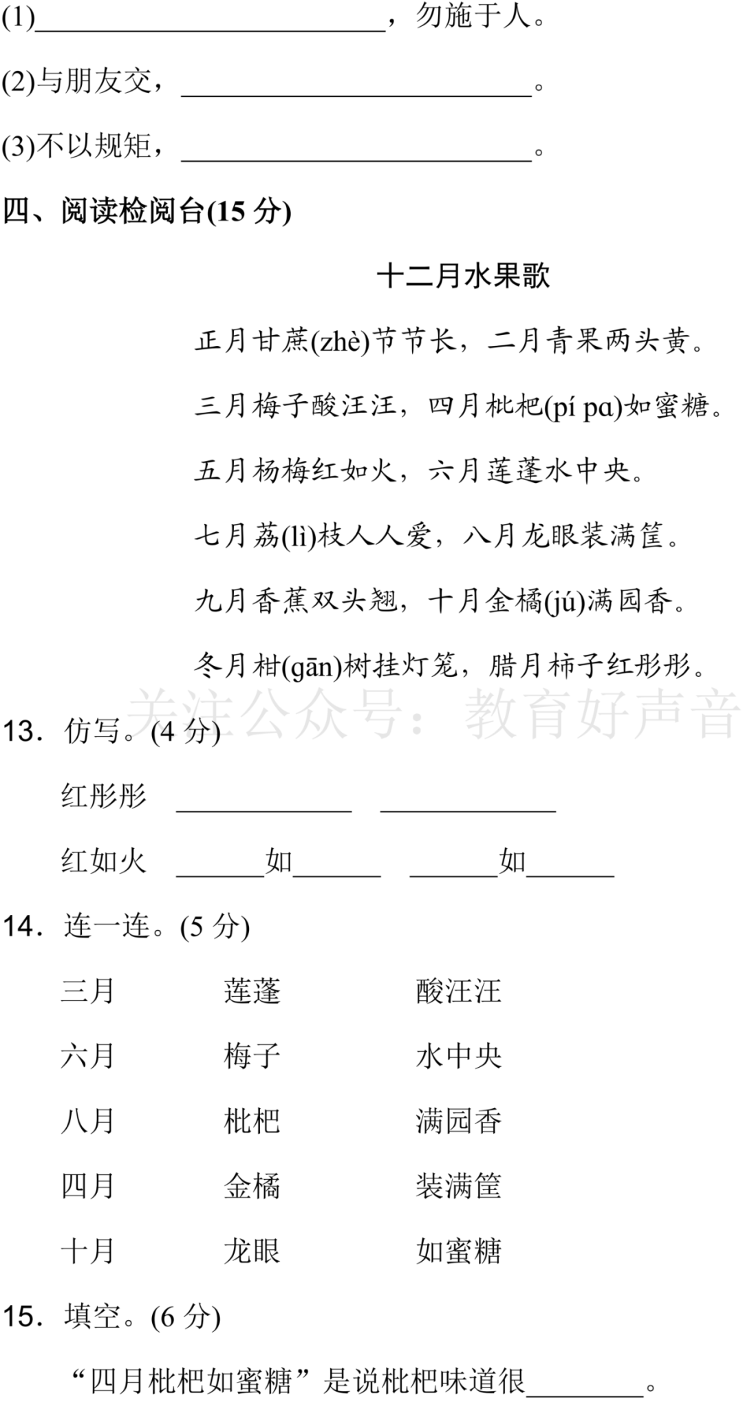 关注后发送消息“二单元试卷”