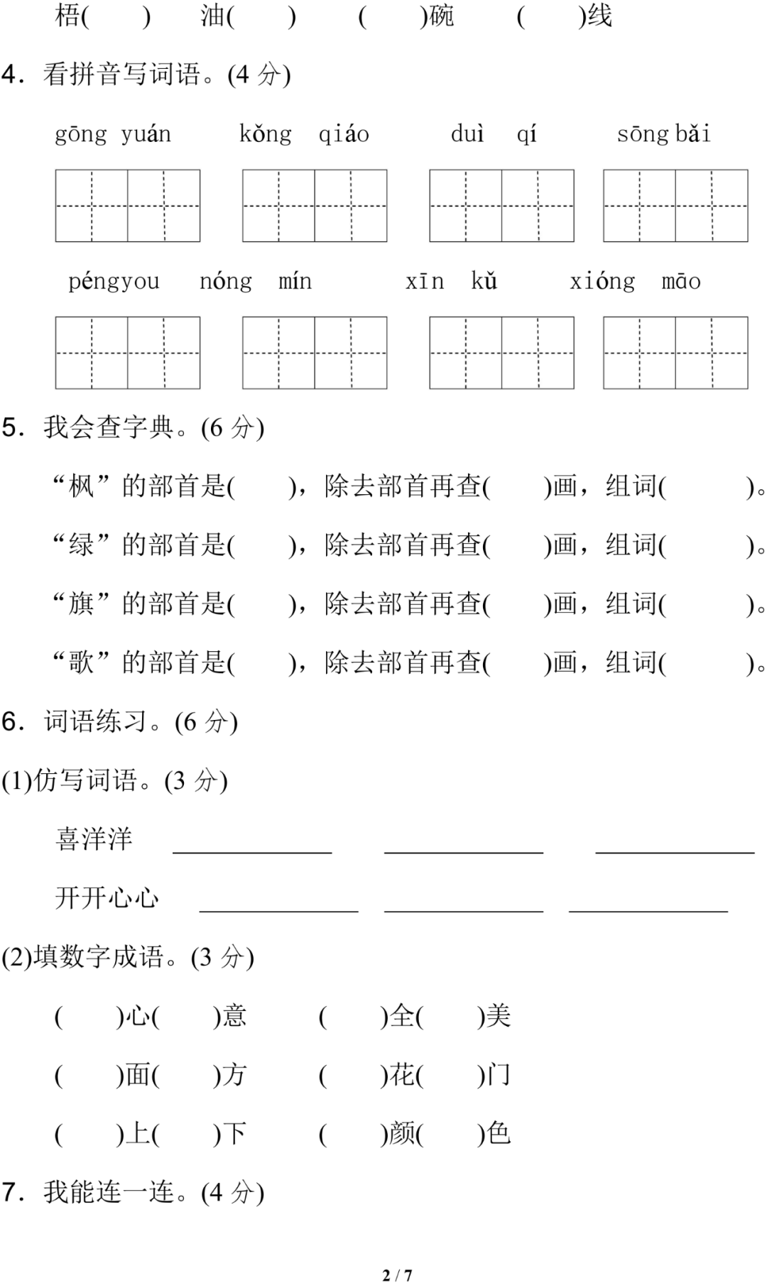 上册第二单元试卷、答案