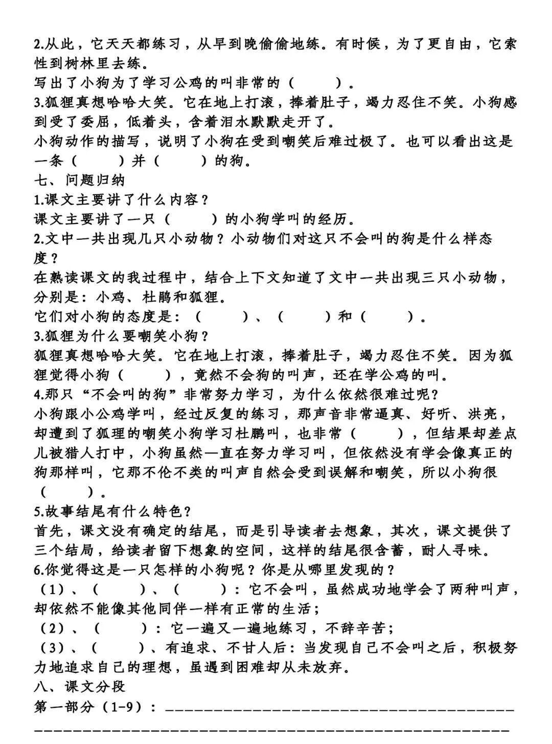 课文主要讲了一只不会叫的小狗学叫的经历。