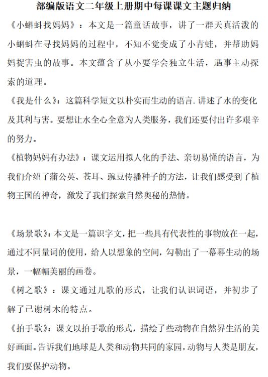 统编版语文二年级(上)期中必须掌握的课文重点梳理丨可打印