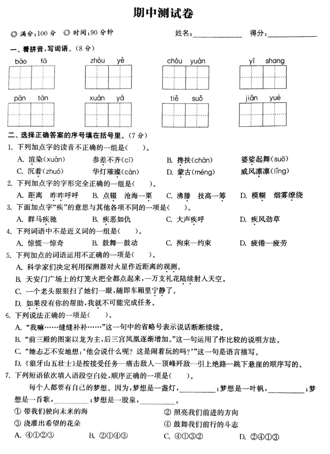 话筒君老师今天给大家整理部编版六年级语文上册期中模拟AB卷,请各位家长打印给孩子练练,巩固知识点,最后冲刺期中考试!