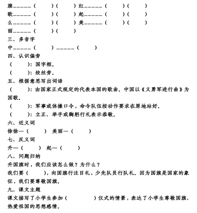 今天给大家分享的是统编版语文一年级(上)第五单元知识梳理填空(附答案),可下载打印