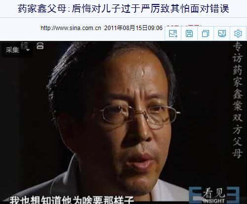 药家鑫的父亲在接受央视《看见》栏目采访时,也非常痛心——@“我平时管教孩子过于严厉,令孩子在犯错之后害怕面对,不懂处理,最终酿成大罪。”