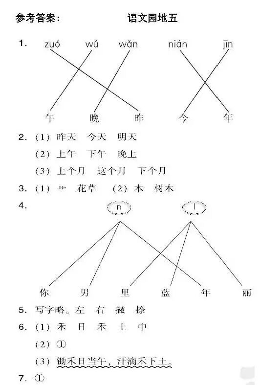 统编版语文一年级(上)第五单元《语文园地》同步练习丨可打印