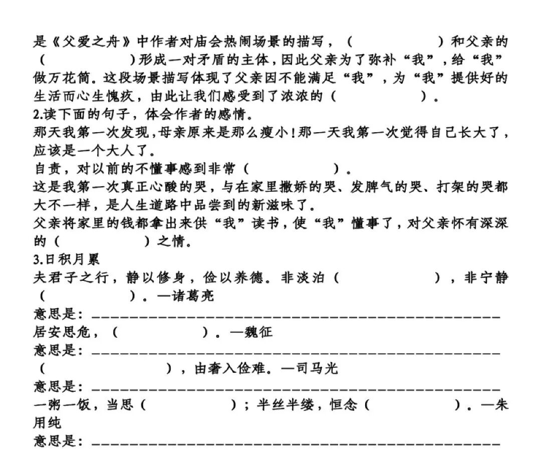 (2)我是什么时候能够用自己手中的笔,把那只载着父爱的小船画出来就好了!(从这句话中,你体会到了作者对父亲怎样的情感?)