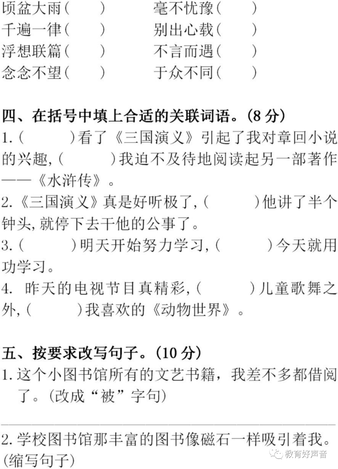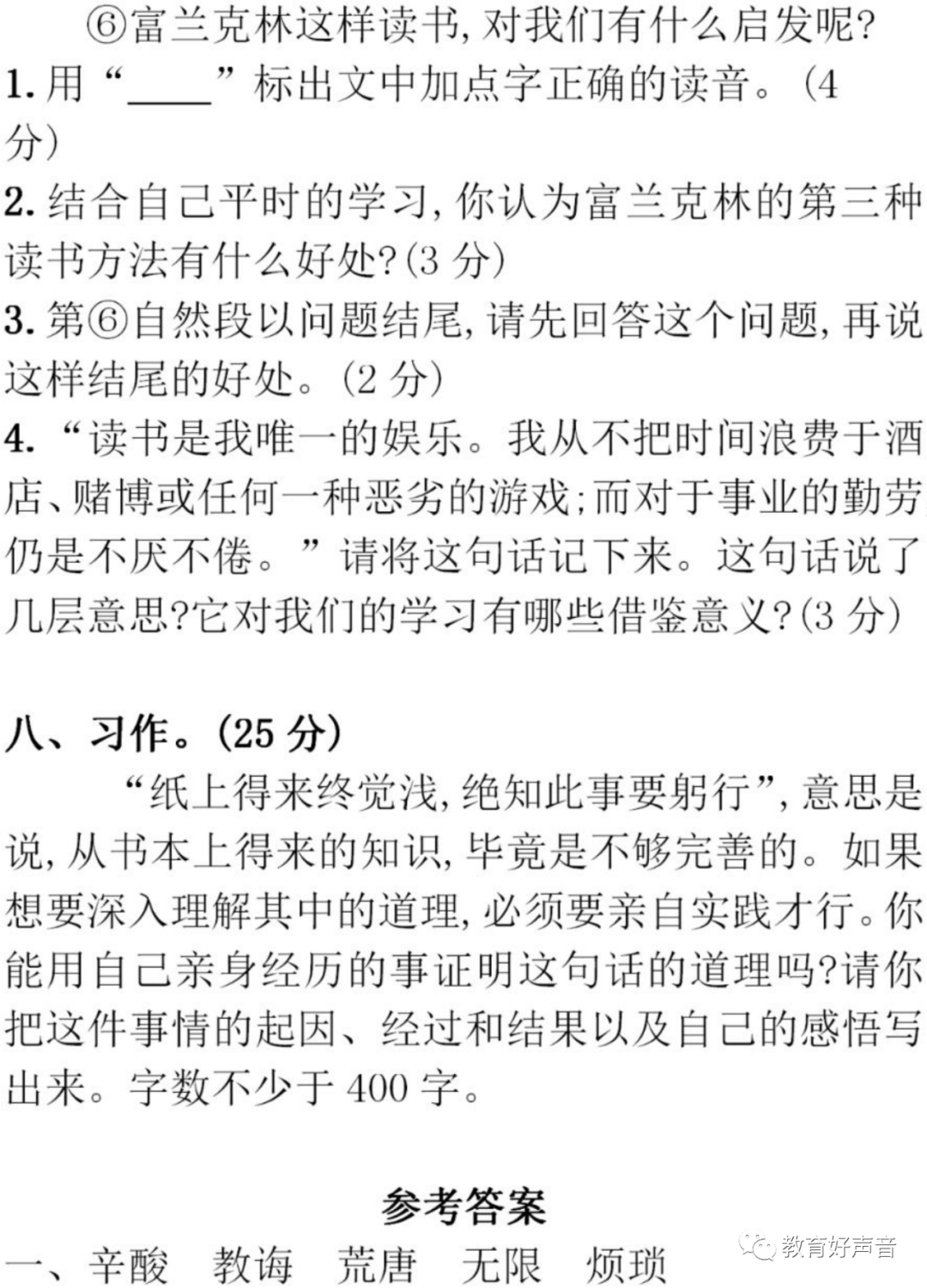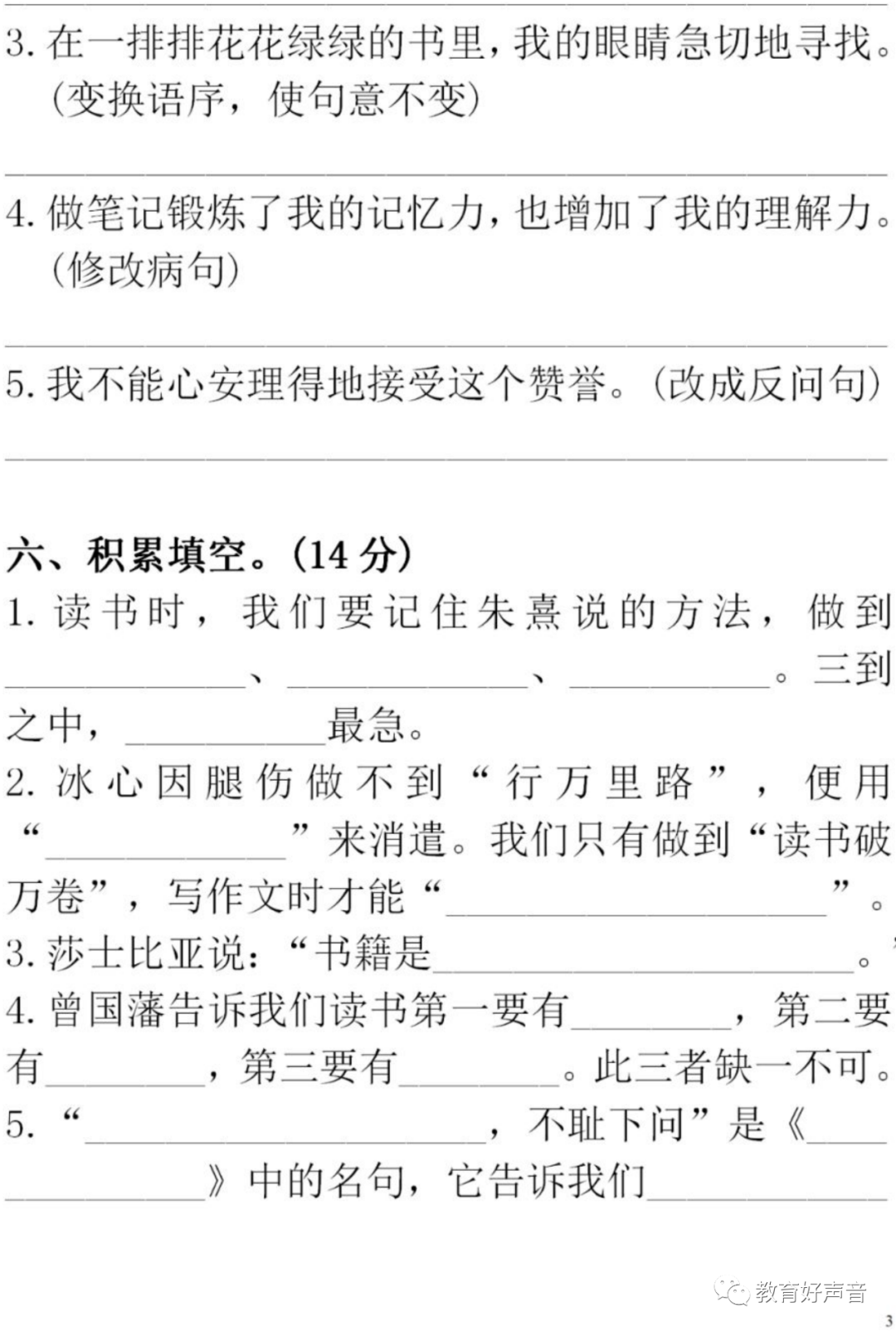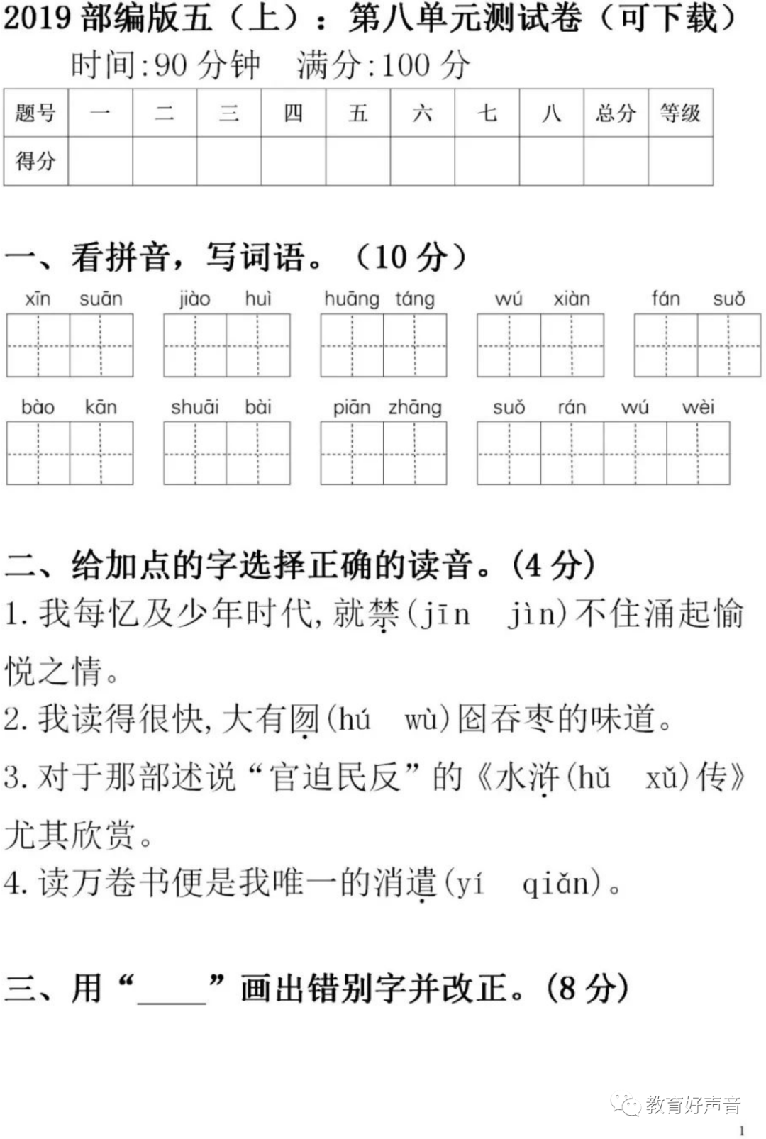 今天,给大家整理了最新部编版五年级语文上册第八单元测试卷,总共4套,请各位家长领取电子版打印给孩子练练,更好的巩固第八单元的知识点,查漏补缺,备战期末!