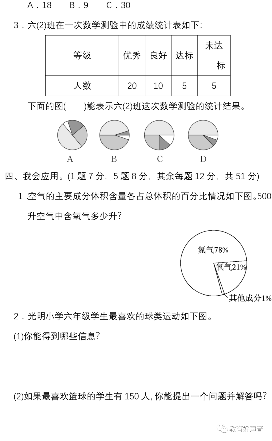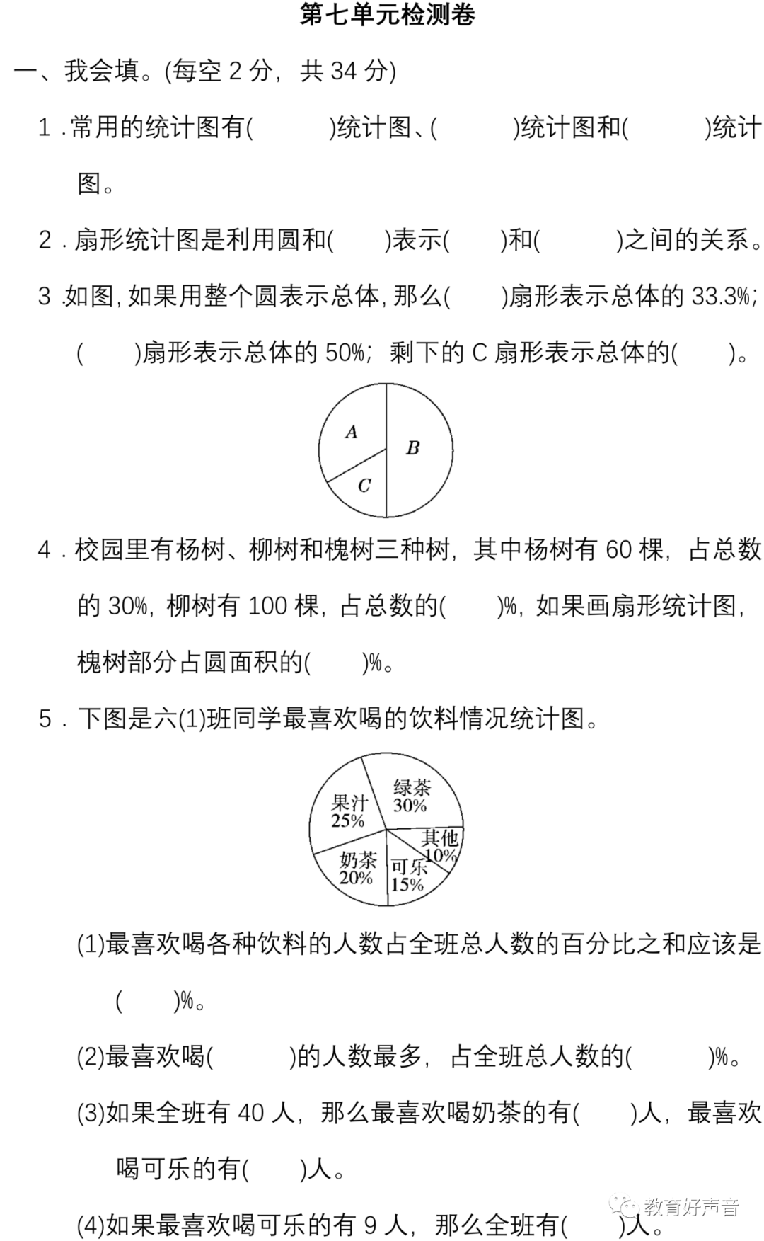人教版数学六年级(上册)第七单元精品试卷、答案,可打印