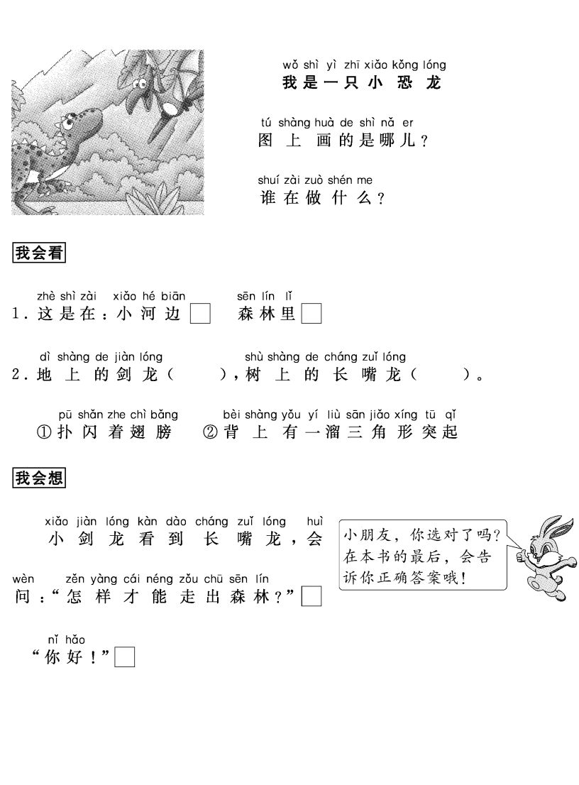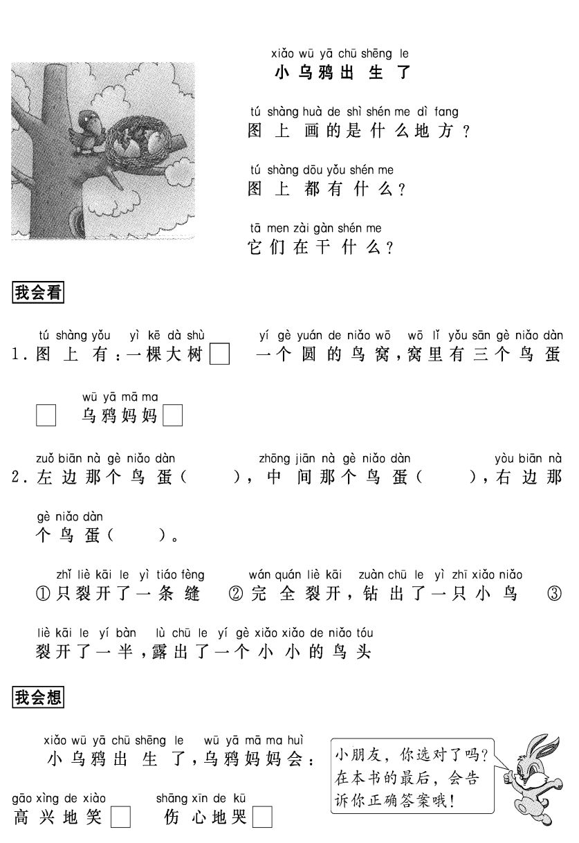 4.能正确使用“,”“。”“?”“!”。能写通顺的句子,不丢字,不多字。学过的字必须写字,没有学过的字可以写拼音。