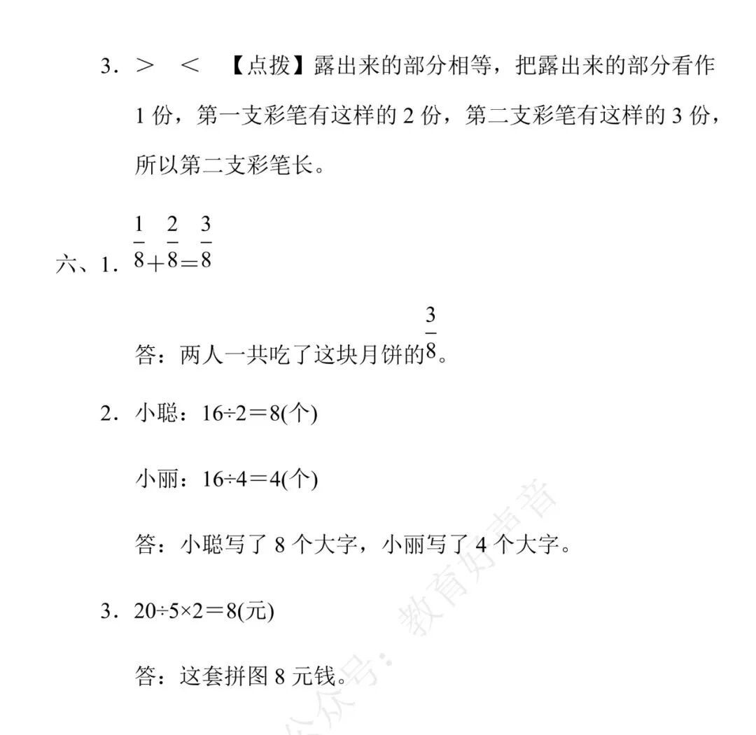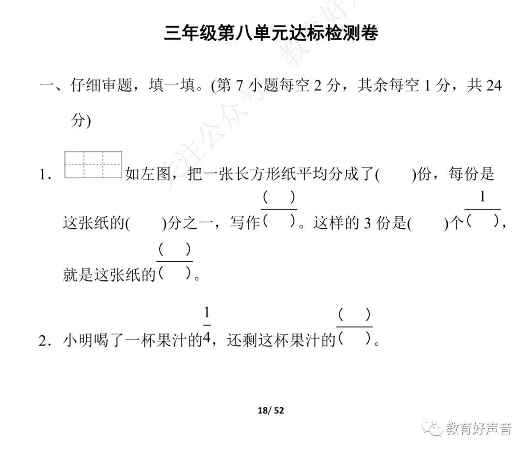 人教版数学三年级(上册)第八单元精品试卷、答案,可打印