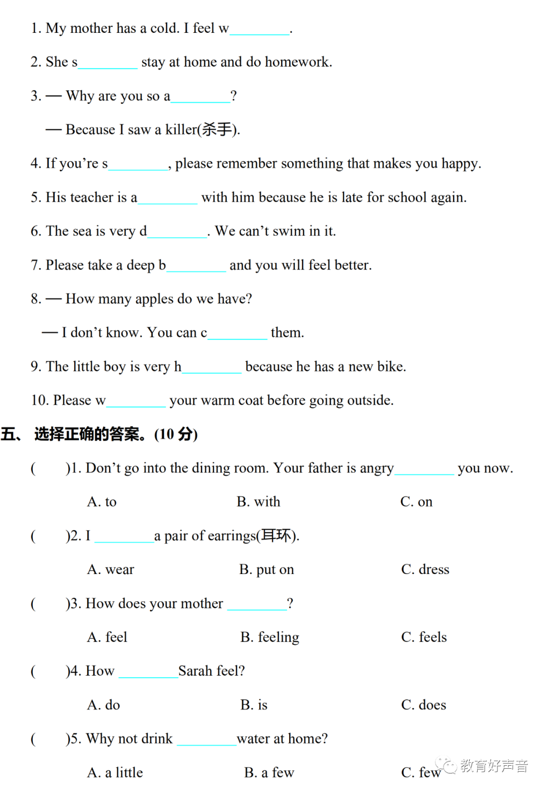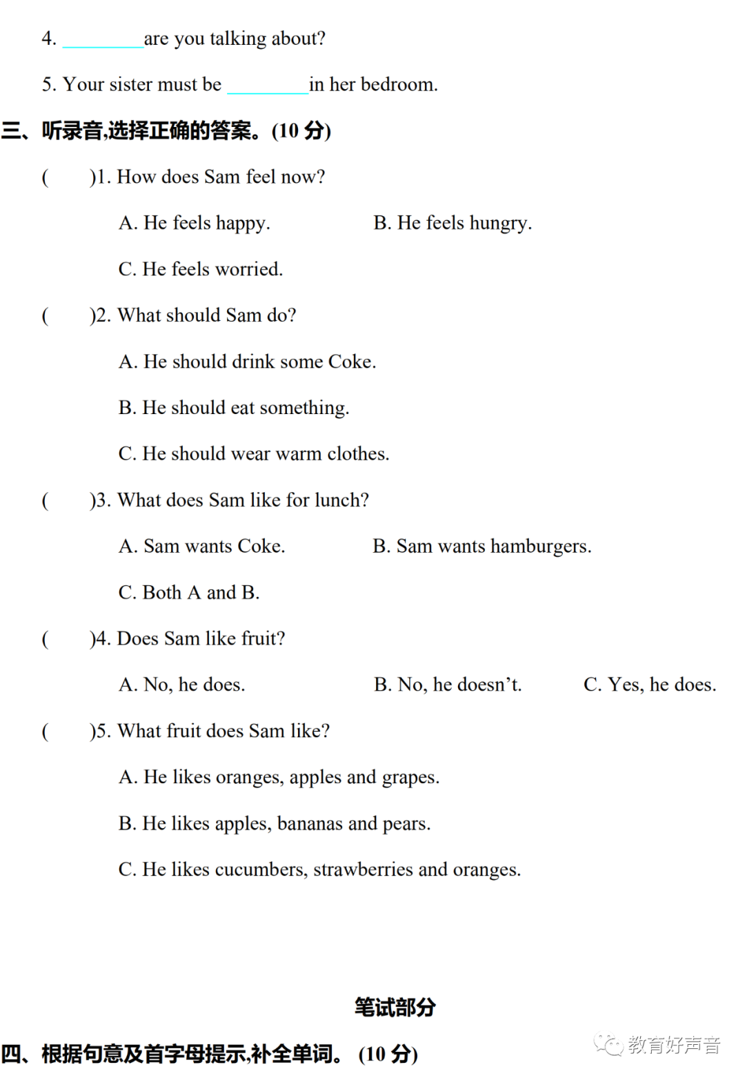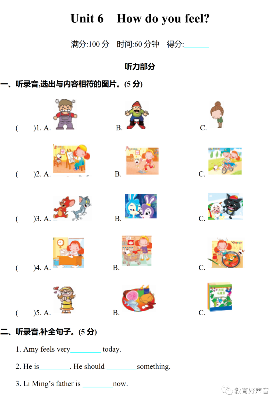话筒君给大家整理了最新人教PEP版六年级英语上册第六单元测试卷,请各位家长打印给孩子练练,更好的巩固第六单元的知识点!