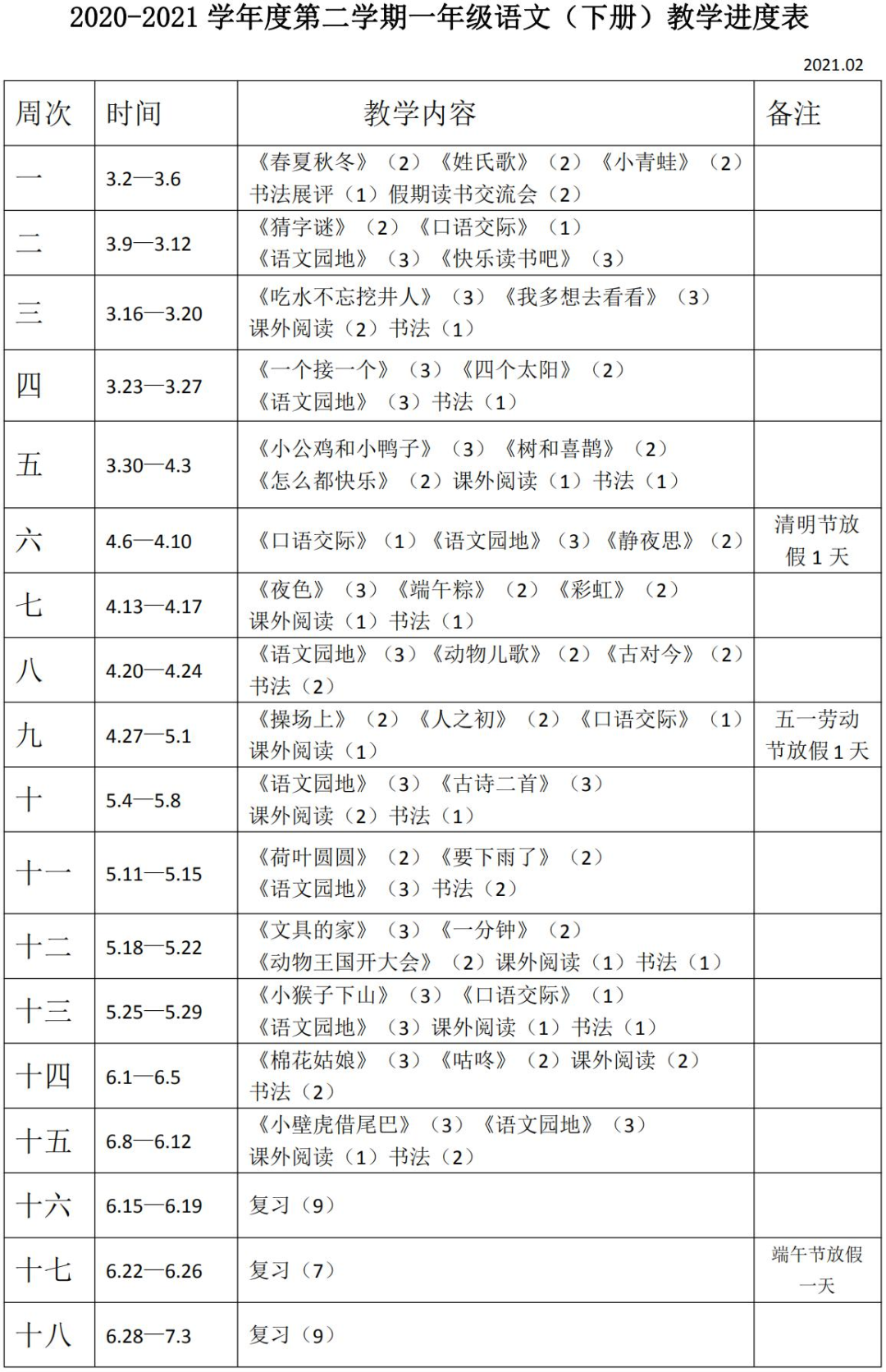- 2021春季统编1-6年级下册教师工作包