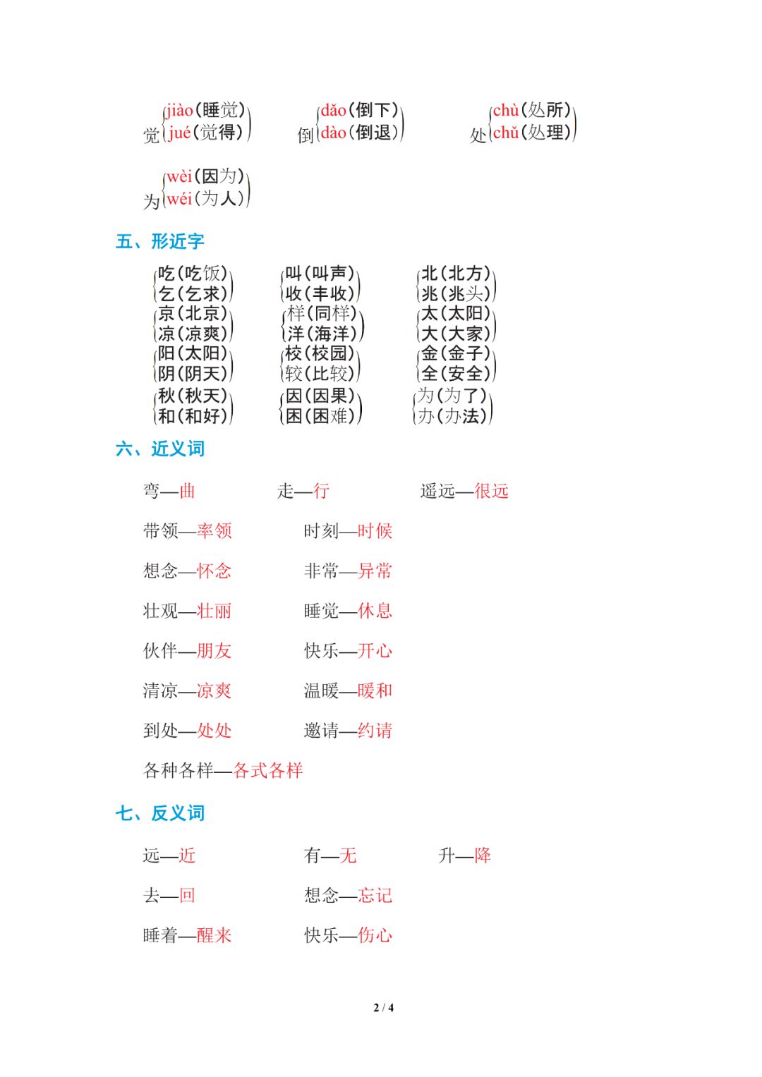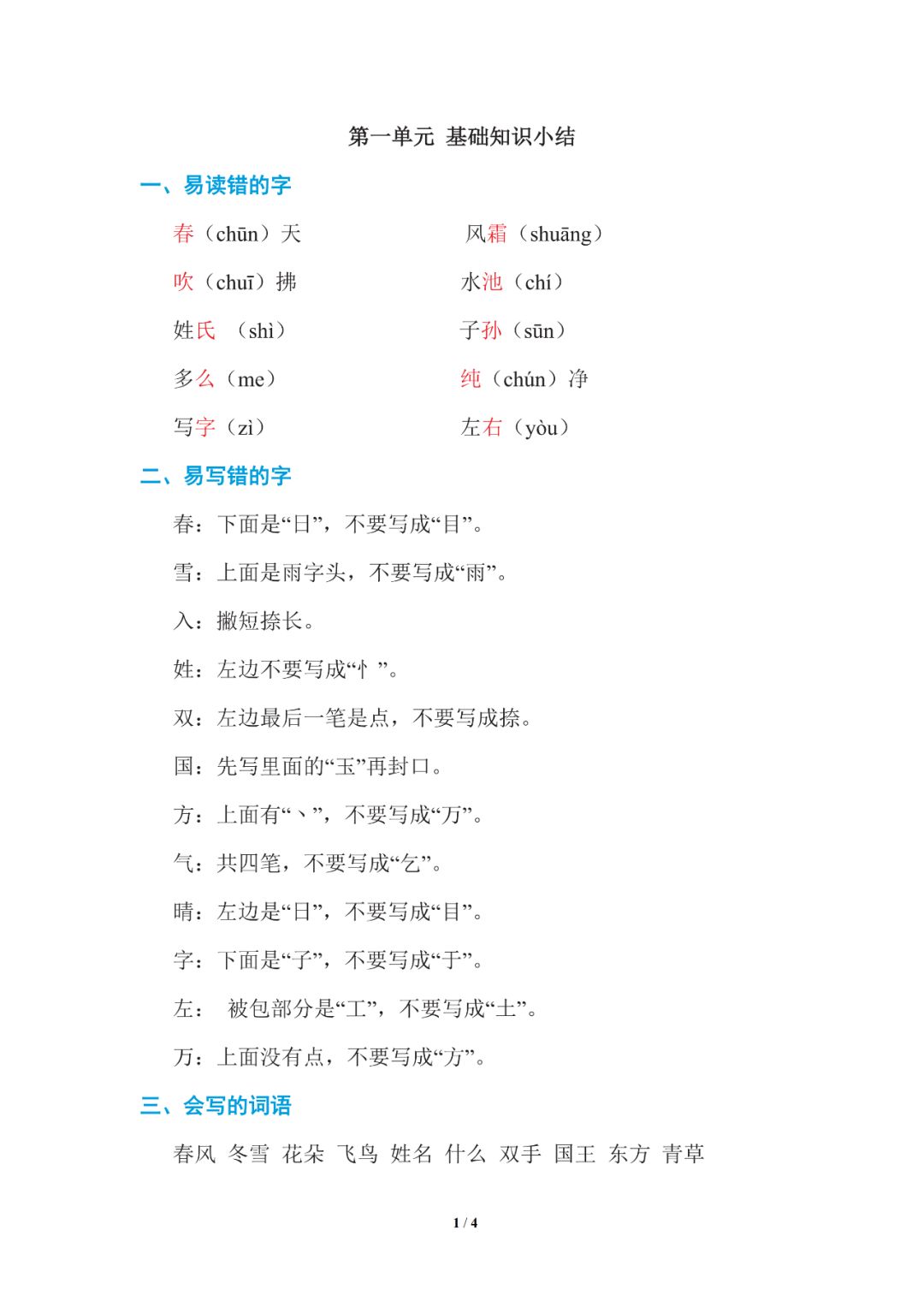 一年级第1-2单元知识小结