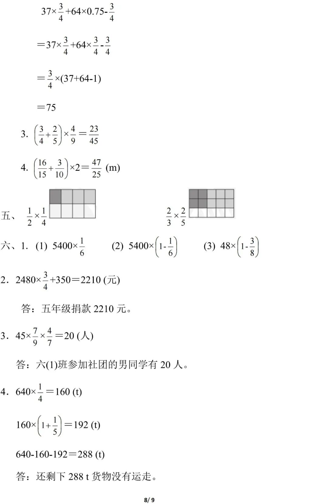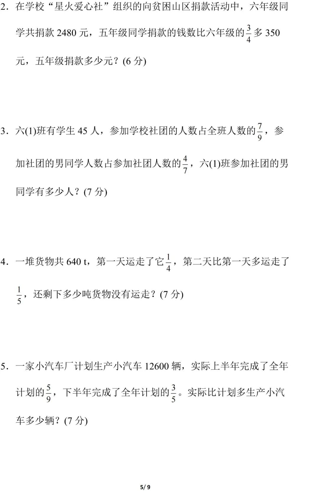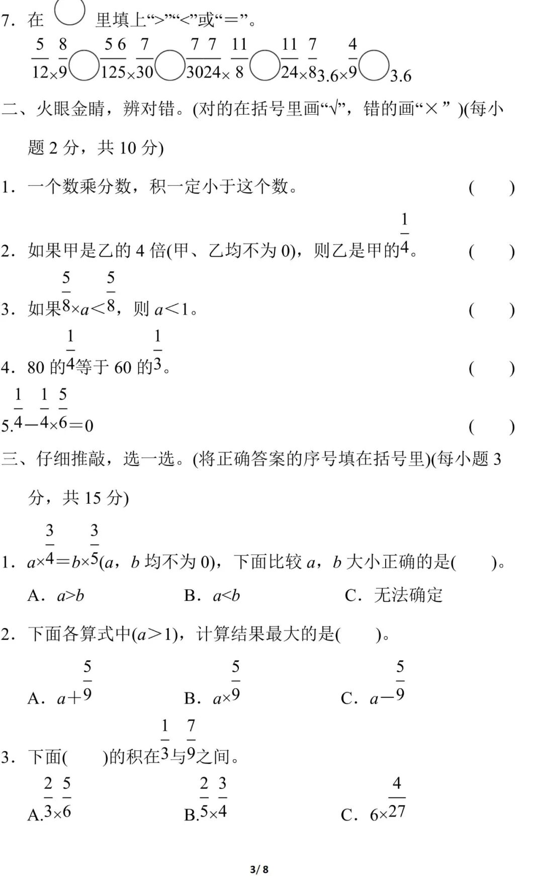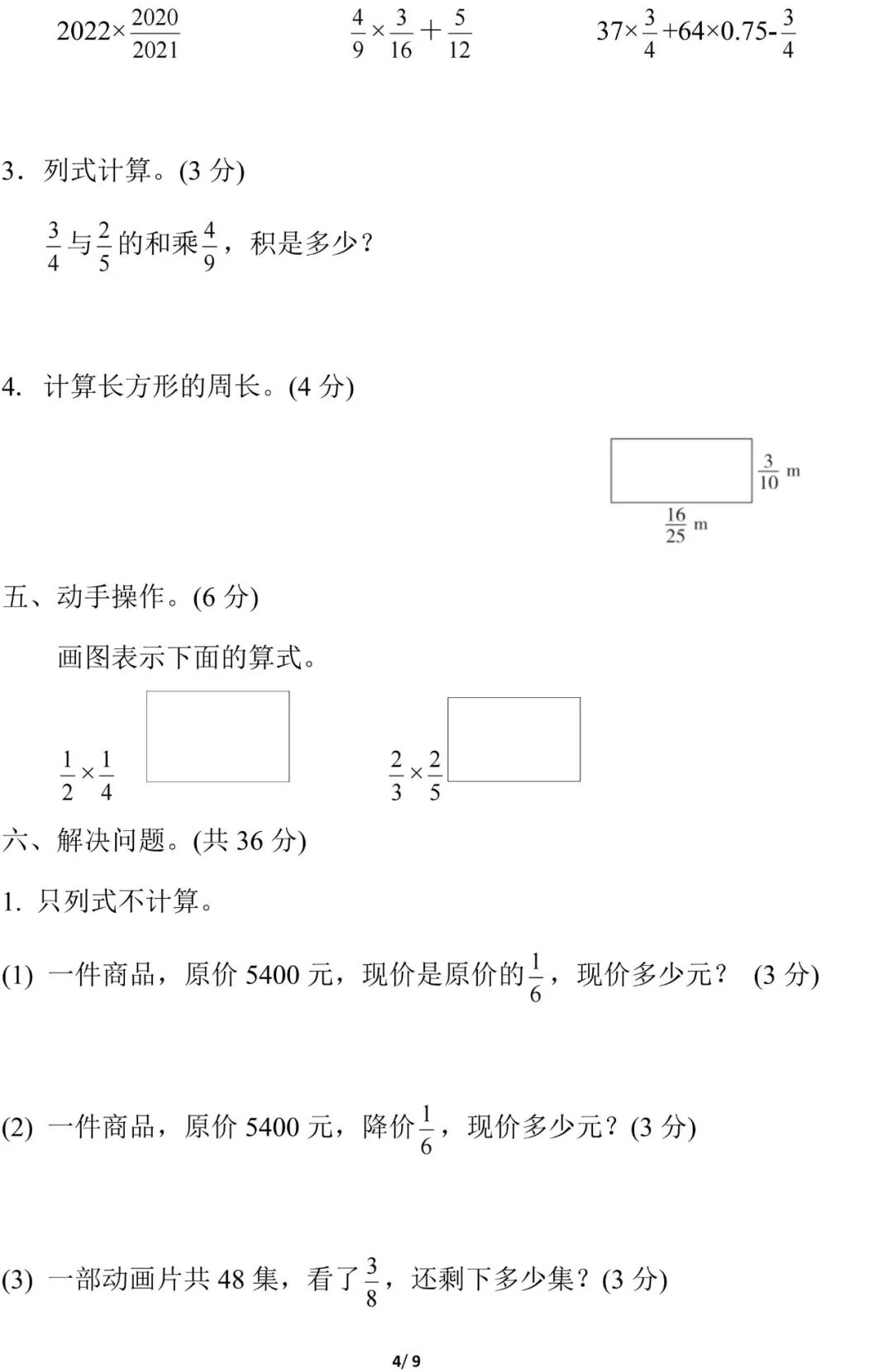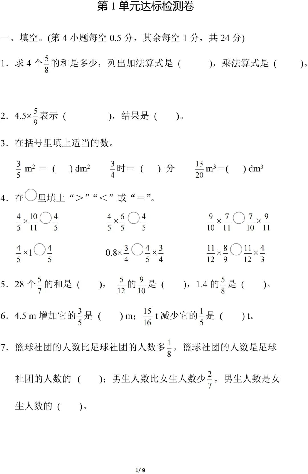 人教版数学六年级(上册)第一单元测试题,可打印!