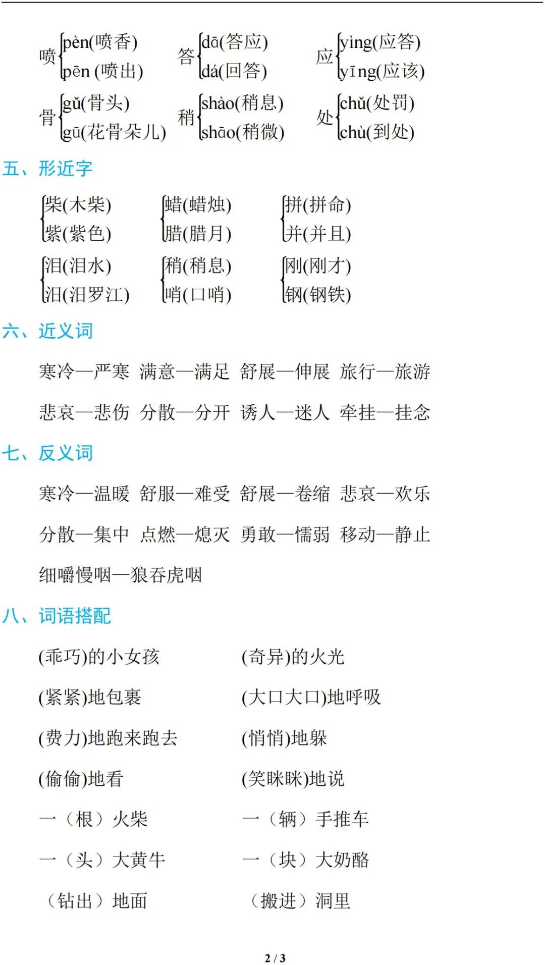 2021统编版语文(上册)三年级第三单元知识小结(可下载打印)