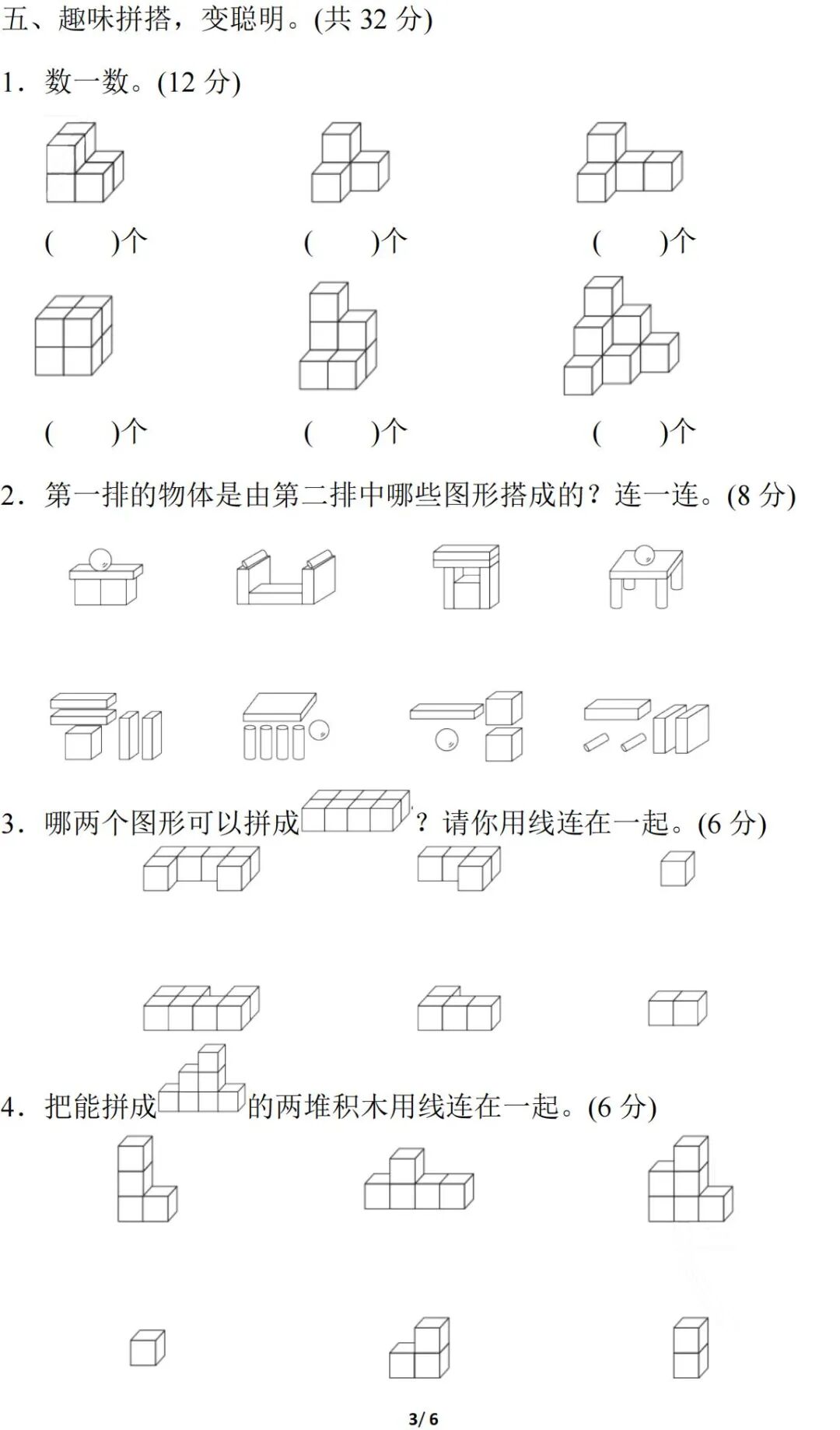 人教版数学一年级(上册)第四单元测试题,可打印!