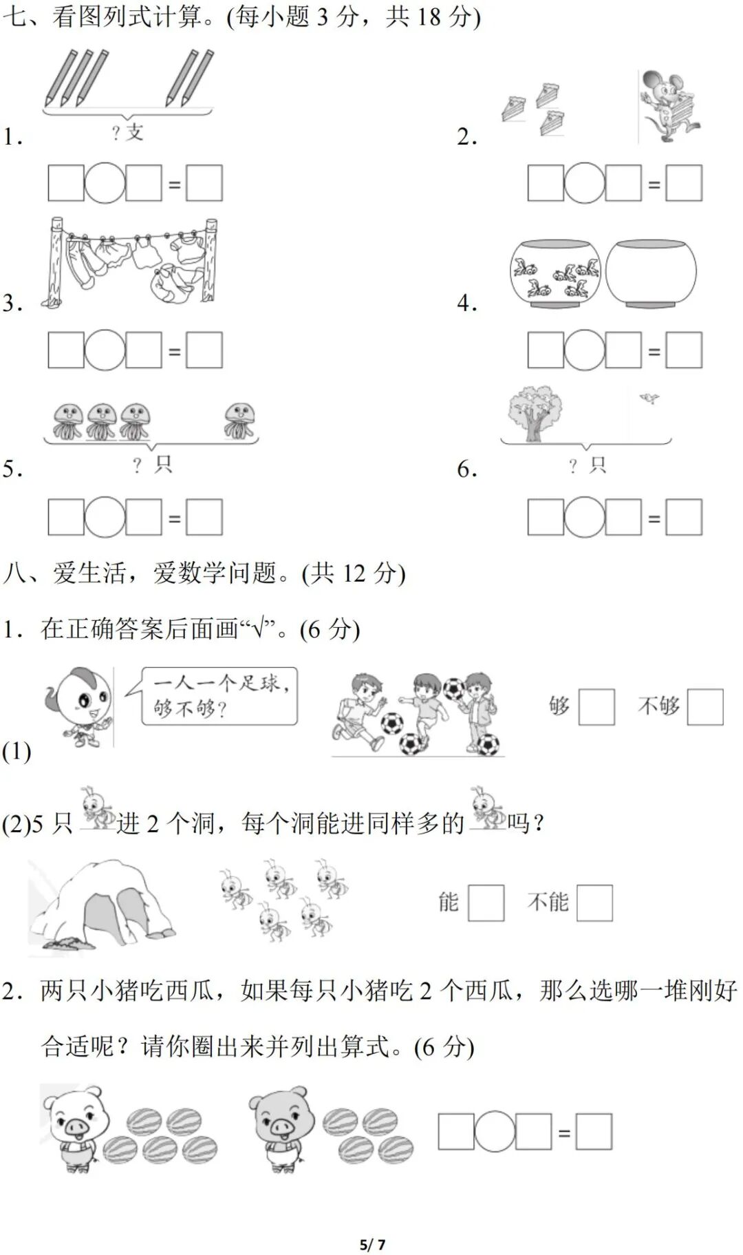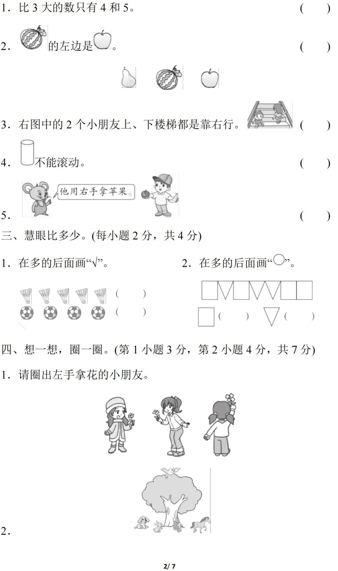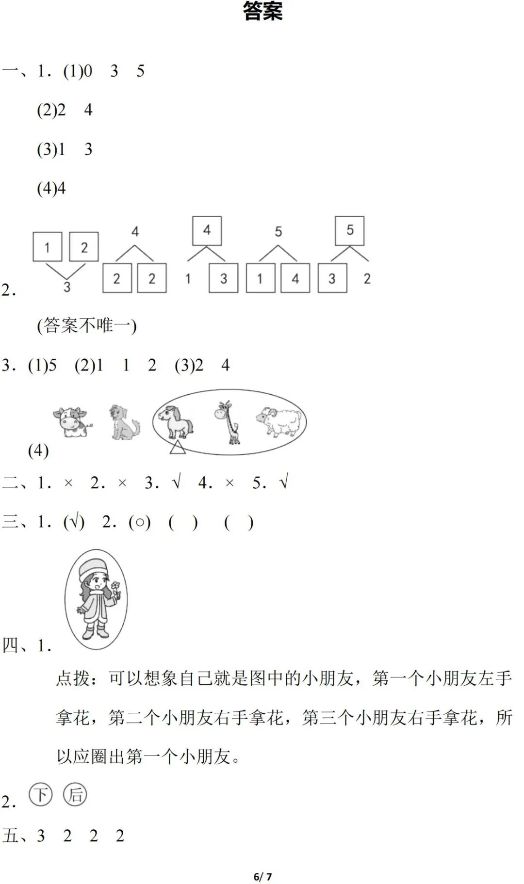 人教版数学一年级(上)精选期中试卷多套(含答案)免费领