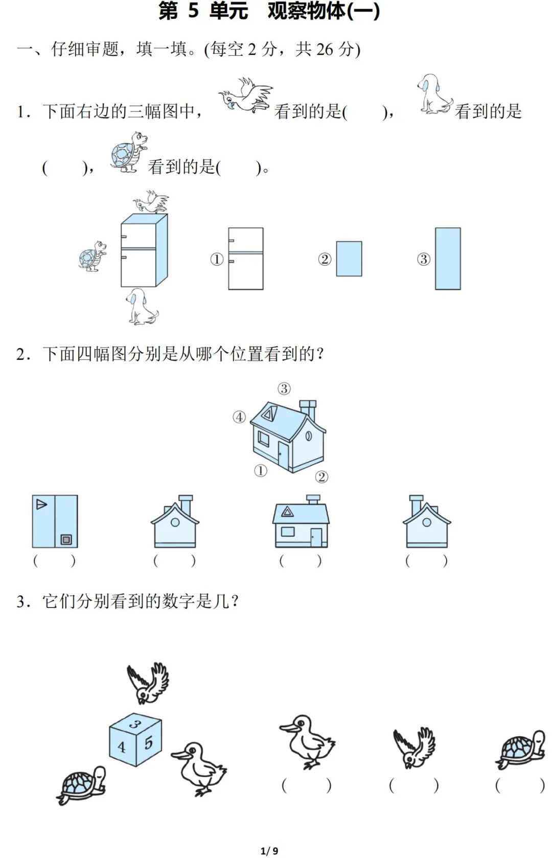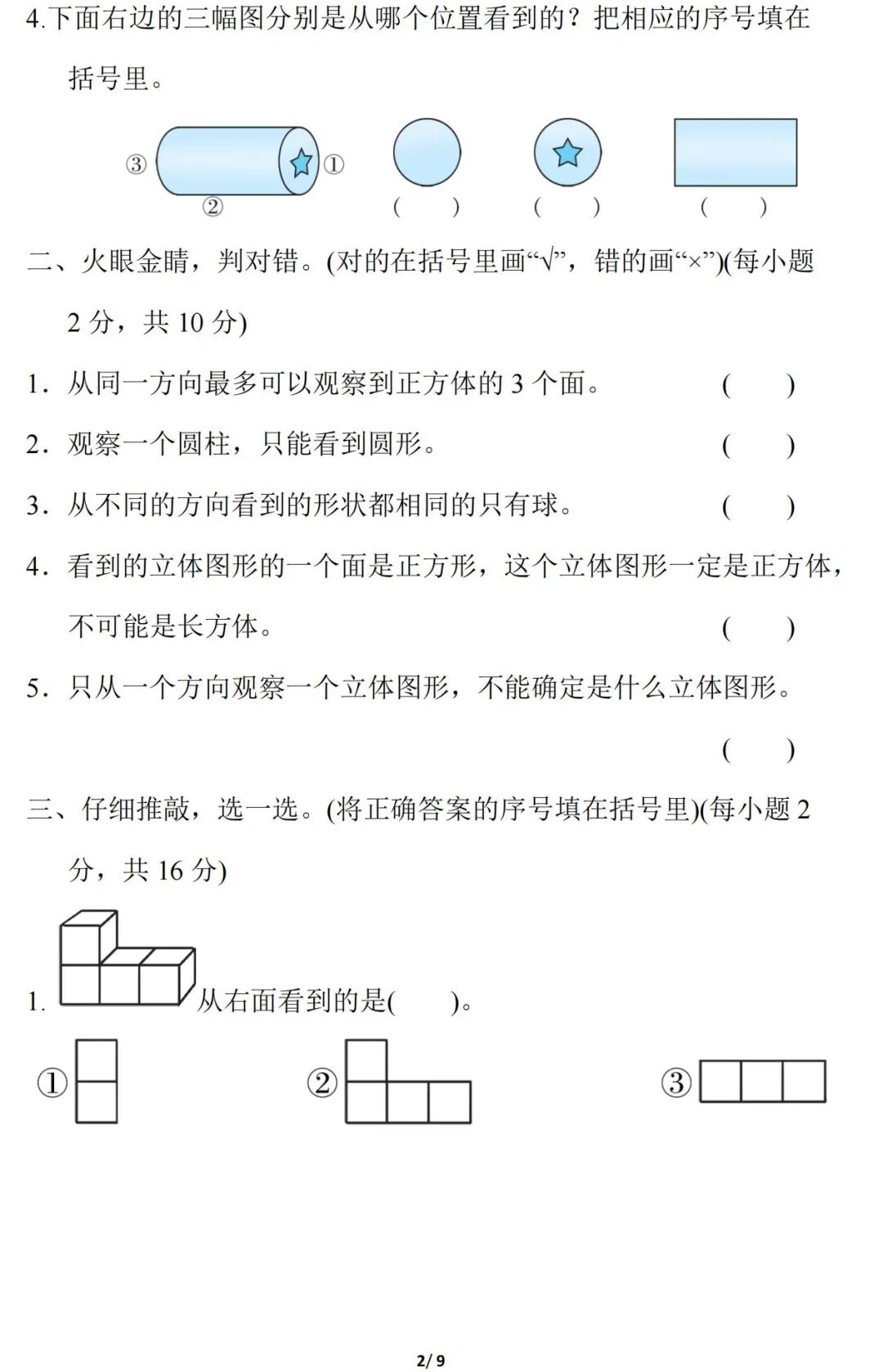 人教版数学二年级(上册)第五单元测试题,可打印!