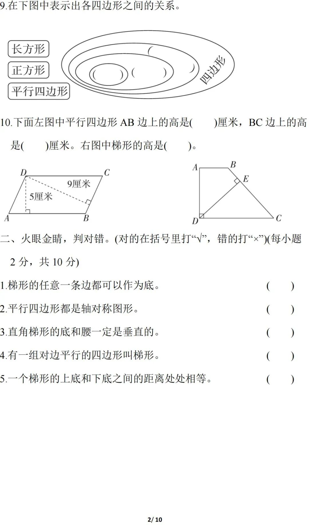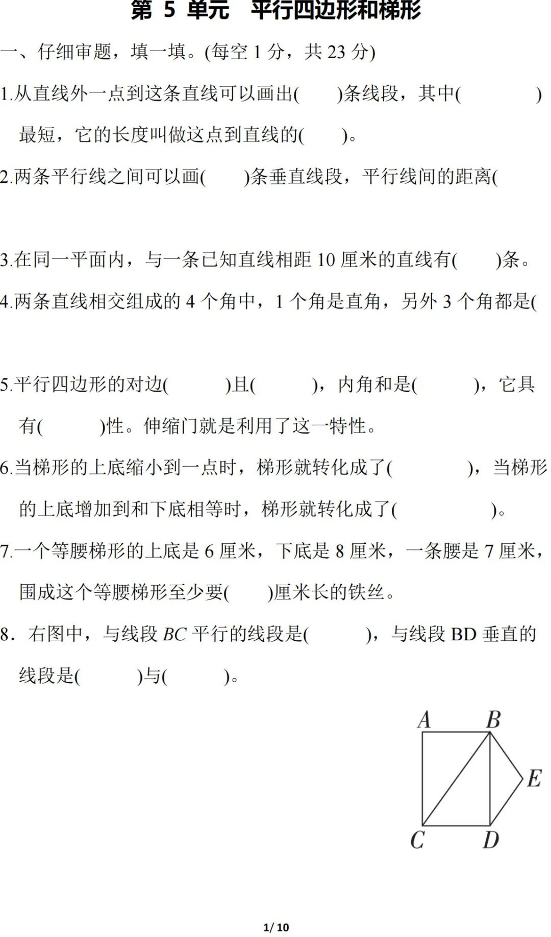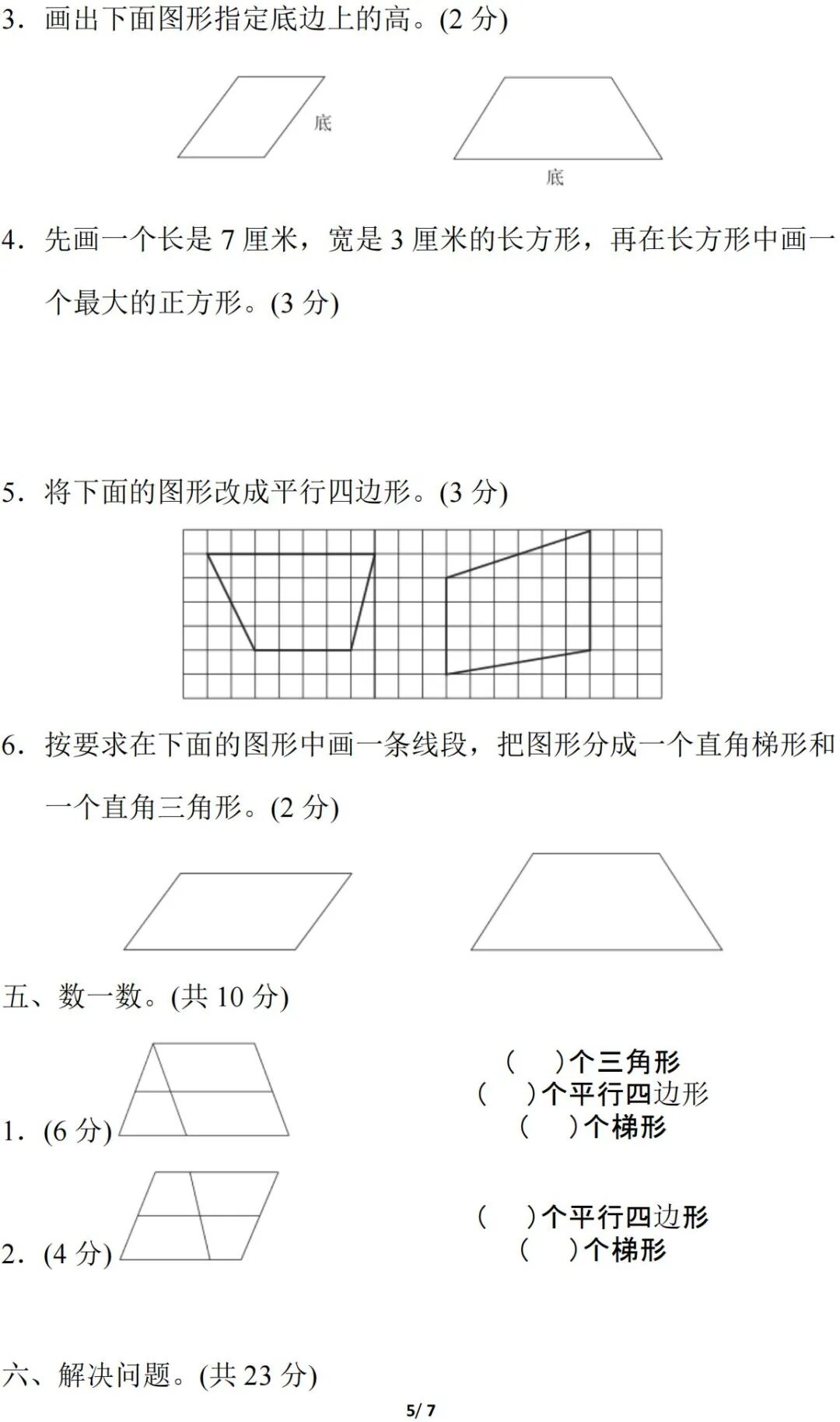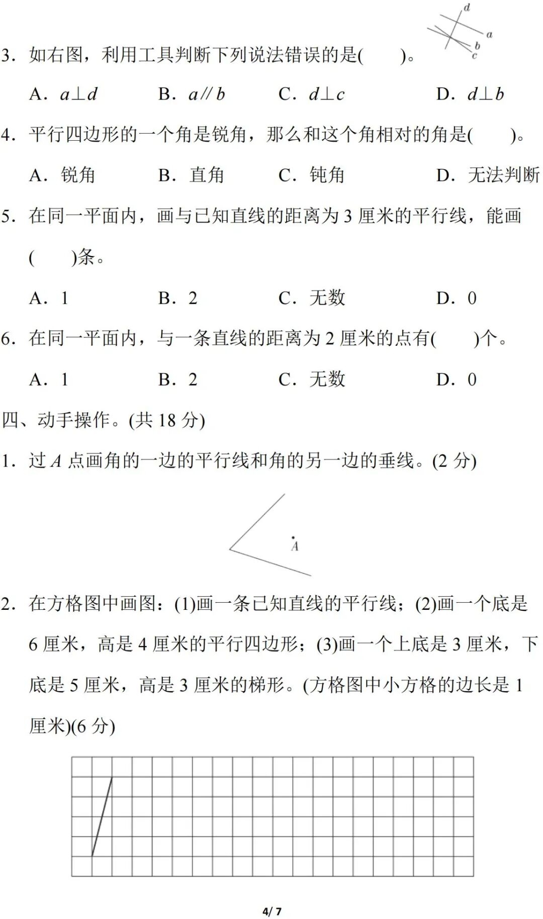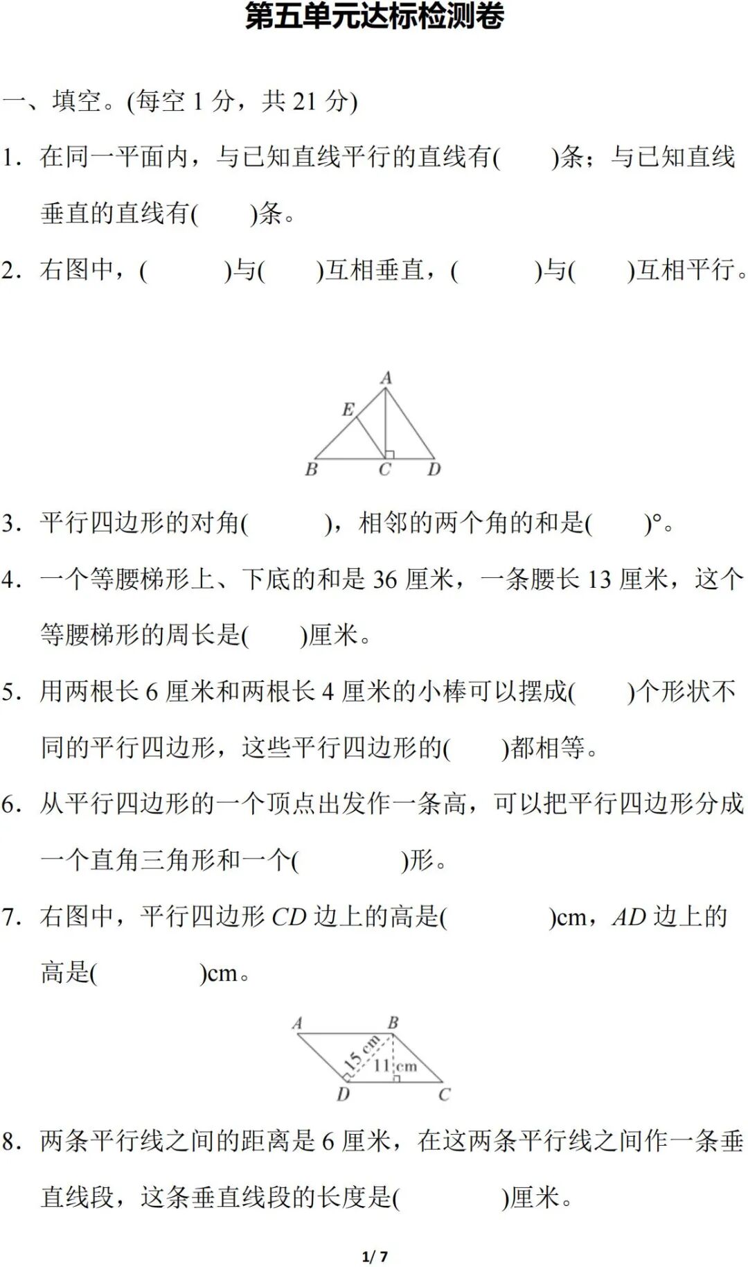 人教版数学四年级(上册)第五单元测试题,可打印!