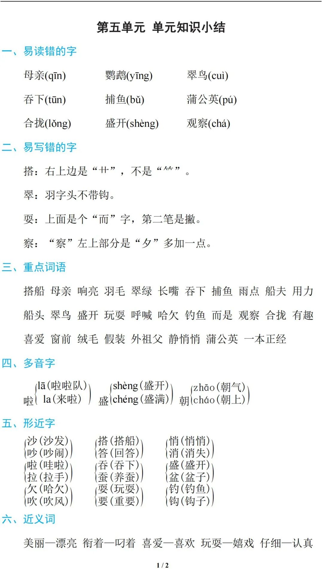 为了让孩子能更好的巩固第五单元的知识点,耿老师特意为大家,精心整理了第五单元知识小结,建议各位老师和家长领取,打印给孩子练习!(欢迎转发到班级群)