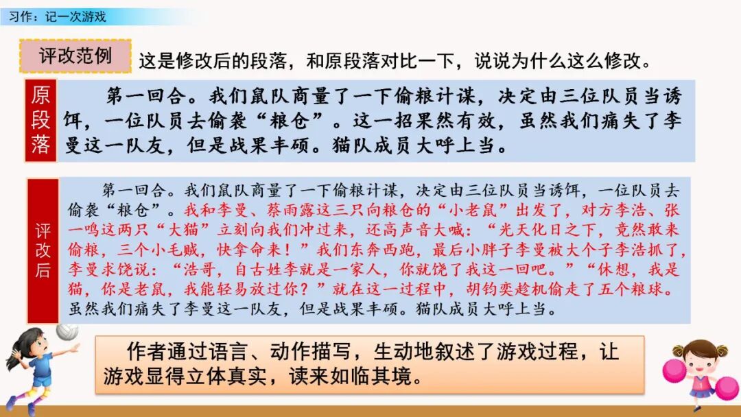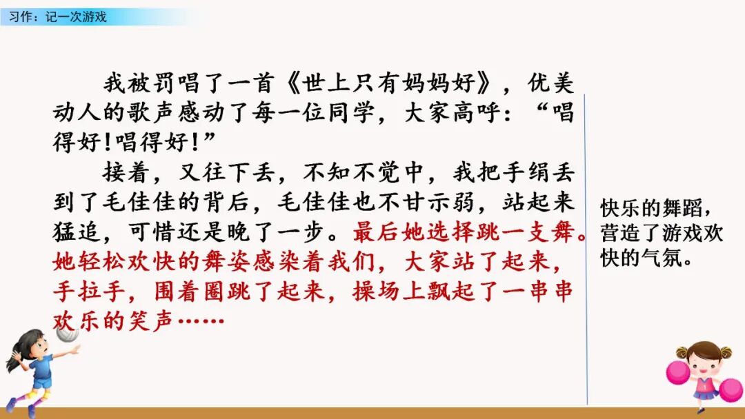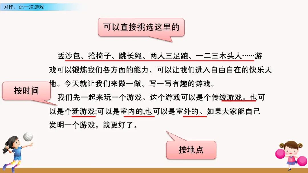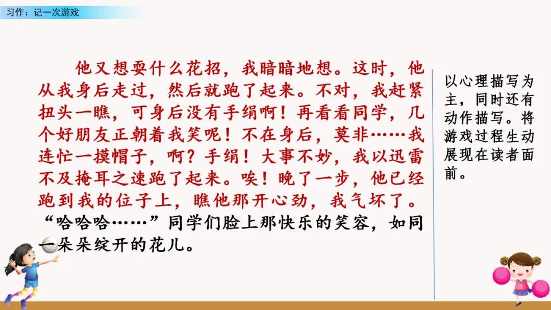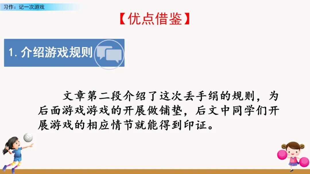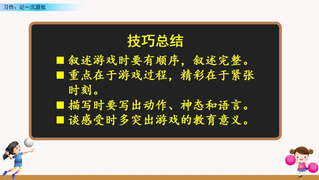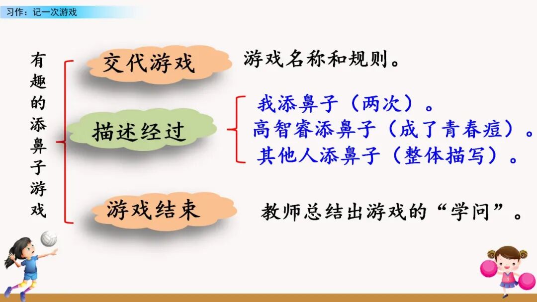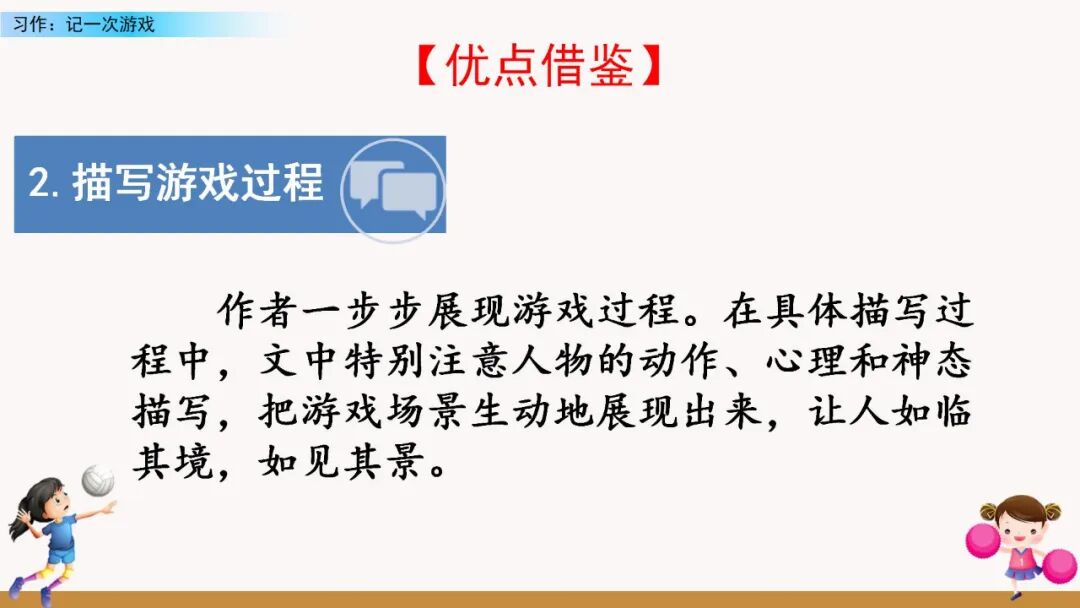 写作时可以按照游戏前、游戏中、游戏后的顺序来描写,把游戏的过程写清楚。