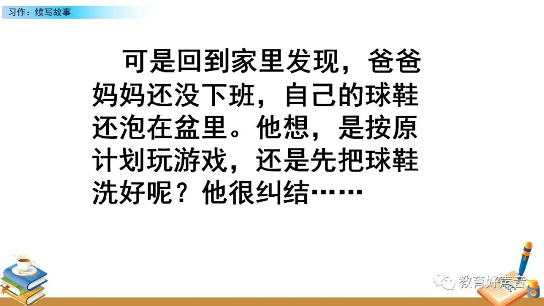 本次习作要求续写故事,根据文中所给的图文,展开合理地想象把接下来发生的故事写完整。