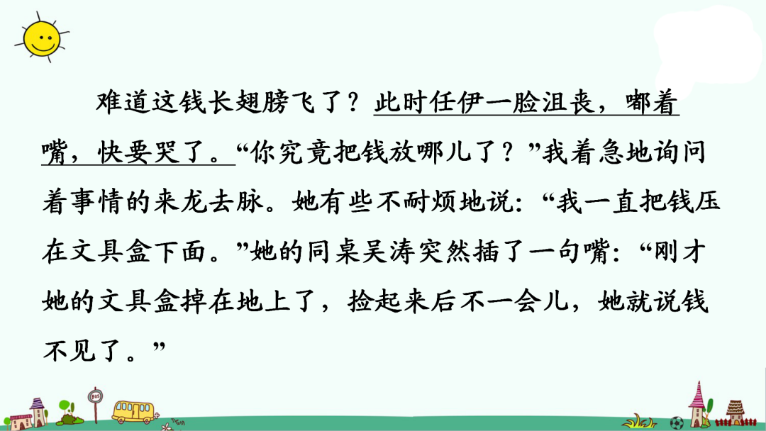 范文一:爷爷戒烟了 “你到底戒还是不戒……”瞧!又来了。爷爷屡教不改,不戒烟,奶奶又训他了。随之这场家庭风波也开始了。奶奶先是夺过爷爷手中的烟,紧接着对爷爷发动“攻击”。爷爷像一句也没听见似的,坐在沙发上一声不吭,奶奶的一枚枚“炸弹”在爷爷身上一点作用也没起。 奶奶马上改变了策略,一把鼻涕一把眼泪地诉说着:平时跟她一起跳广场舞的老张的儿子才40 岁就得了肺癌,还有小王……一连串的故事足以让人掉泪。爷爷好像有点招架不住,站起来就要走。“想一走了之?门都没有!”奶奶看爷爷要走,便迅速跑到门口,“如果你今天不投降,就别想走!”“闪开,你不要逼人太甚!” 两人互不相让,几乎要动起手来。我想:“这下该我出场了吧!” 我冲到爷爷奶奶中间,大声喊道:“住手,这么大的人还要打架,你们是怎样教育我的?”爷爷听了,便坐在沙发上生闷气,奶奶转身坐在后面的椅子上直哭。 我一本正经地“教训”起爷爷来:“爷爷,你看你,你怎么不理解奶奶的好心呢?再说了,吸烟对你有什么好处?”爷爷听后,惭愧地低下了头,并对我说道:“我孙子教训得是,是爷爷不对,爷爷向你保证,以后再也不抽烟了,不然咱们拉钩怎么样?”“好,拉钩上吊,一百年不许变!” 哈哈哈哈……奶奶破涕为笑。 总评:故事的起因是爷爷吸烟,奶奶和爷爷发生矛盾;经过是爷爷和奶奶发生争执,互不相让,矛盾升级,“我”劝说他们不要打架;结果是在“我”的劝说下,爷爷认识到了错误,决定不再吸烟。为了把事情叙述清楚,作者抓住了人物的动作、语言和神态等进行描写,且使得故事更加吸引人。 范文二:骄者必败 一年一度的班级乒乓球比赛又开始了,同学们个个摩拳擦掌,跃跃欲试,恨不得马上就大显身手。 我十分淡定,心里认定今年的冠军非我莫属,因为在上届比赛中,我发现各路豪杰都是我的手下败将。拿了上届比赛的冠军后,同学们私下里都喊我为“师父”,经常让我当他们的指导教练。所以,我这个“教练”对这次比赛的第一名自然是志在必得。 比赛马上就要开始了,我从容不迫地走进比赛场地,傲慢地看着我的对手——去年的手下败将,今年的“徒弟”。比赛刚开始时,我不费吹灰之力就以高分拿下了第一局,于是我的精神便松懈下来。然而第二局对手改变了战术,专门往我的左边打,又快有准。左边是我的短板,我越是应接不暇,对手越是兴奋。每当我奋力把球挡回去的时候,他又突然往右边发球,我来不及反应,顿时被打得毫无还手之力。于是,就这样,我输掉了比赛。 比赛完,我坐在教室里,看着墙壁上“虚心使人进步,骄傲使人落后”的至理名言,惭愧地低下了头…… 总评:文章在叙写乒乓球比赛时,回顾之前比赛的相关情况,为后文叙写“我”因骄傲导致失败的结局做了很好的铺垫,令文章叙事不突兀,顺理成章。结尾用名言点题,简洁有力。 范文三:成长中的自己 快到中午了,妈妈还没有回家。我的肚子饿得咕咕直叫,我想:妈妈怎么还没有回来呢?我好饿呀!就在这时,我脑子里突然闪出一个念头:我都十岁了,我应该学习自己做饭呀! 我来到厨房,把米袋打开,装了两小碗米,倒在盆子里。想了想妈妈做饭时的情景,于是我认认真真地把米用清水淘了几遍。然后,我把淘好的米放进了电饭锅里。可是,该放多少水呢?我突然想起妈妈说的话:煮饭时,煮饭的水淹没食指的第一个指节就可以了,不能多,也不能少。把煮饭的水弄好后,我就把电源插好,按下了开关。我一看,煮饭要二十几分钟,这个时间不能浪费了啊。对了,我还没炒菜呢! “炒菜有什么难的?我一定能学会。可是到哪儿学呢?对了,有电脑啊,我可以到网上搜。” 我想了想,妈妈最喜欢吃西红柿炒鸡蛋。今天中午就做西红柿炒鸡蛋吧!认真学习了这道菜的做法后,我从冰箱里拿出了四个鸡蛋和两个西红柿。然后把西红柿用清水洗干净并切好,接着将鸡蛋打入碗里,搅拌均匀。准备妥当后,我就开始炒菜了。不一会儿,我闻到了一股香味,我开心极了。 刚把菜做好,妈妈就回来了,她看见我做了菜,笑着说:“你太棒了,你真是长大了。”我害羞地低下了头说:“我还需要多学习呢!”我们吃得津津有味,尤其是我,不仅把西红柿炒鸡蛋给吃了一半,还多吃了一大碗米饭。 这次做饭,我不仅得到了妈妈的表扬,还学会了自己动手,真是一举两得呀! 总评:文章生动、具体地讲述了小作者自学做饭的经历,很有生活气息。小作者遇到不会的事情,能自己去寻找解决问题的方案,这点很棒!小作者在结尾总结了自己的收获,升华了主题。 范文四:我最想说的一件事 上周五的语文课上,王老师范读课文时我听到她把“惊蛰”的“蛰”读成了第四声。“老师,您读错了,“蛰” 应该念第二声。”我站起来说到。王老师先是一愣,然后问大家,大家都说不知道。接着,为了确认那个字的正确读音,王老师查了一下字典,并说:“刘刚同学的意见是对的,老师的确是读错了。” 放学回家,我把这件事告诉了爸爸,没想到爸爸却发火了:“你懂不懂礼貌?你这是不尊重老师的行为。”我解释说:“老师说过,没有人是十全十美的,谁要是有了错,大家应该帮助他(她)改正。”这下爸爸更火了,他拍了拍桌子,加大嗓门对我说:“你还嘴硬?你作为学生,在老师上课时乱提意见,这还了得?”“这是您的看法,我们老师可从没这样说过。”我嘟着嘴,只是轻轻地嘀咕了一句。谁知还