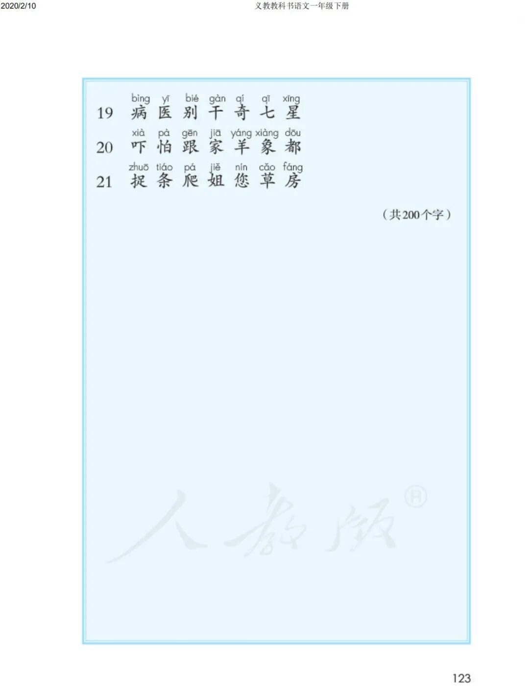 一年级下册写字表