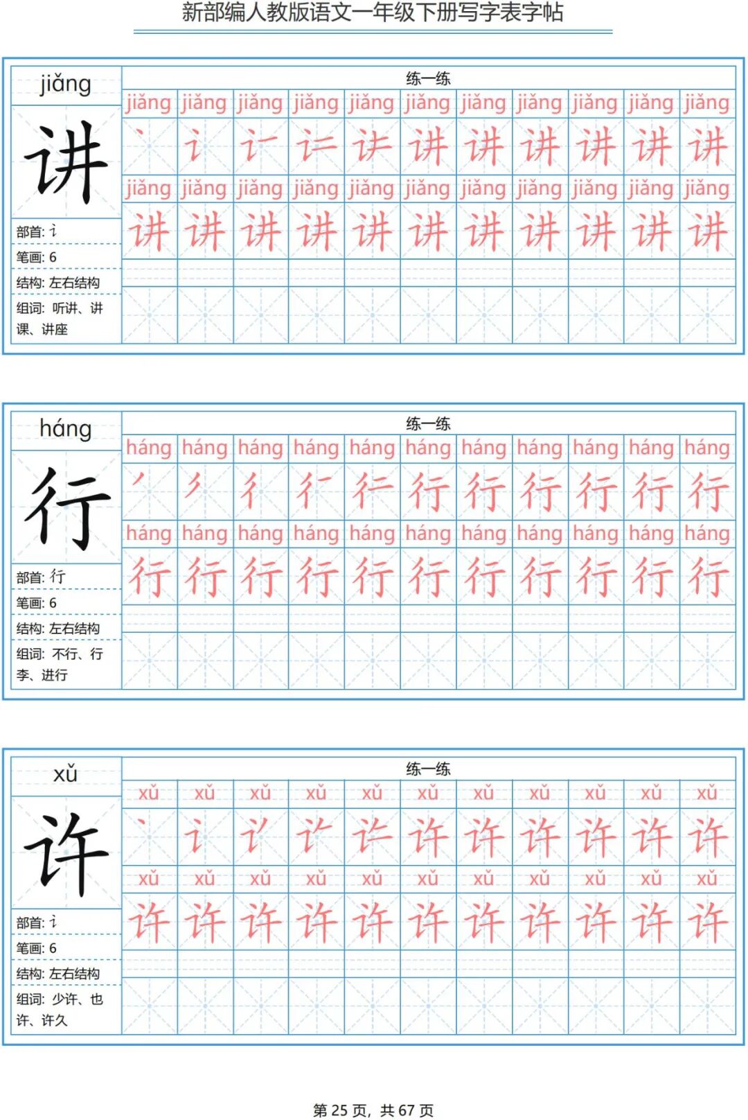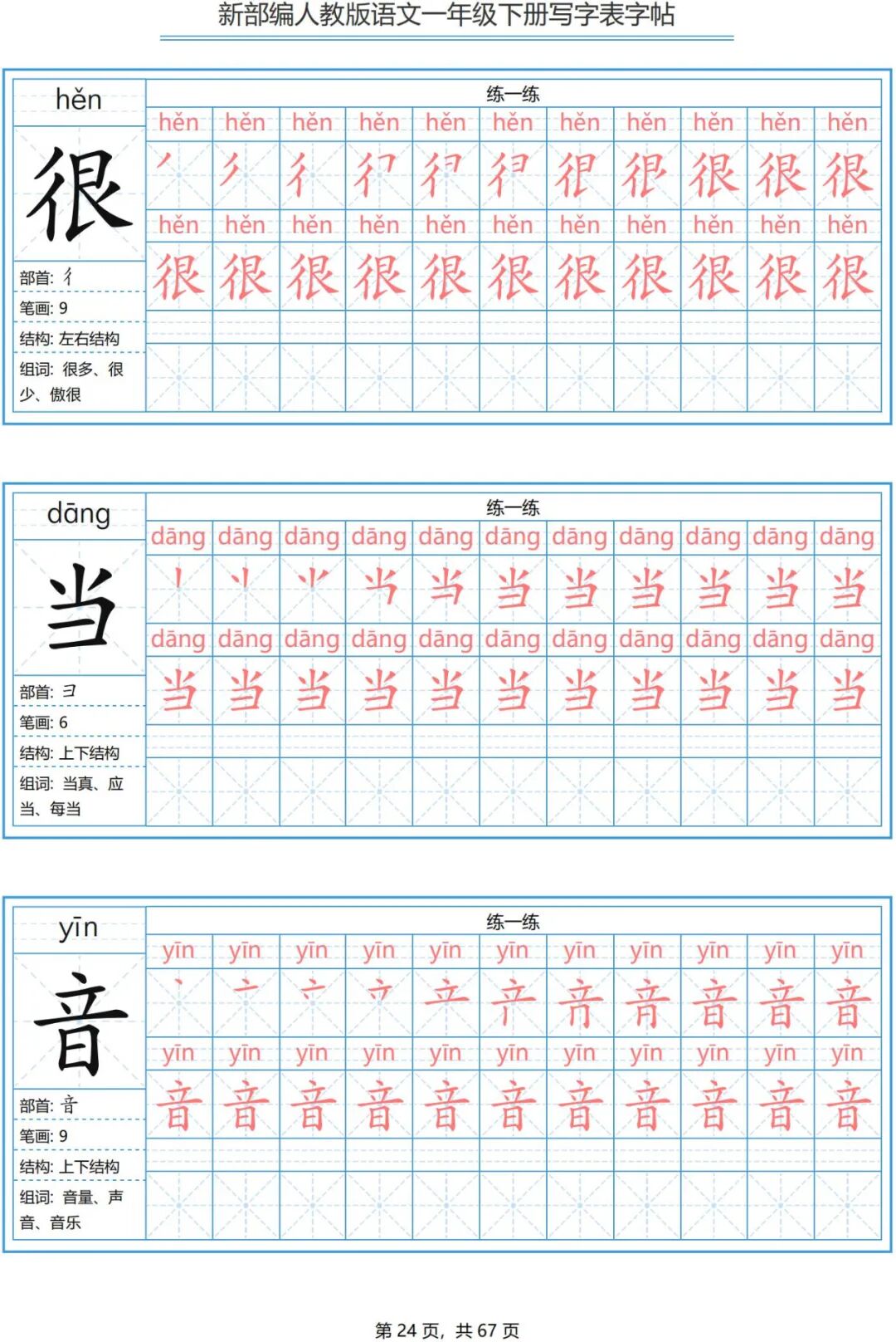 一年级写字表字帖(之三)