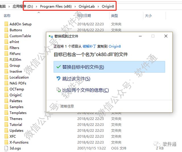 18. 复制ok80.dll到\Origin8目录中,替换目标中的文件