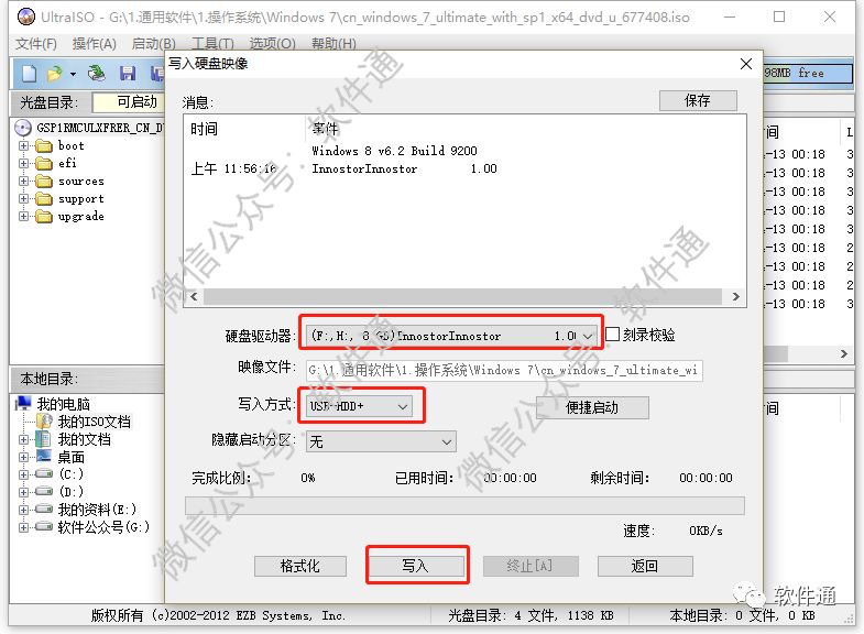 7. 选择硬盘驱动器,这是需要提前插入U盘或者一张空白的光盘,。点击写入就可以把iso文件写入的U盘或者光盘了