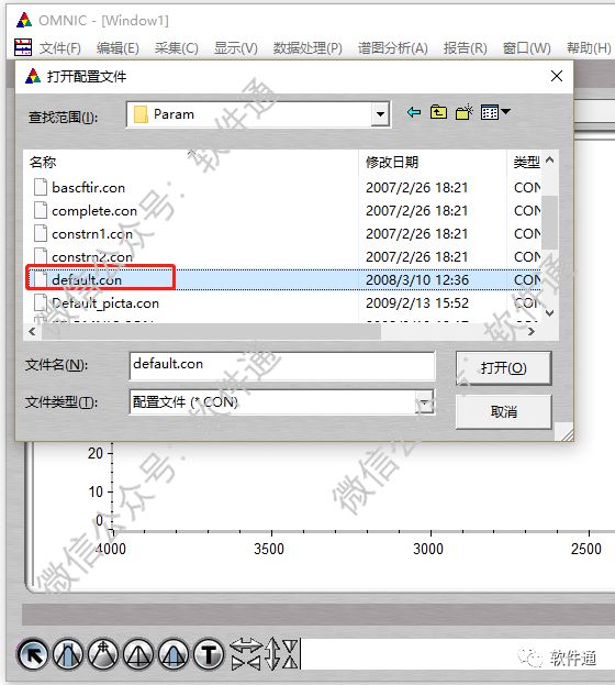 12. 定位到C:\My Documents\OMNIC\Param文件夹,选中default.cn,点击打开