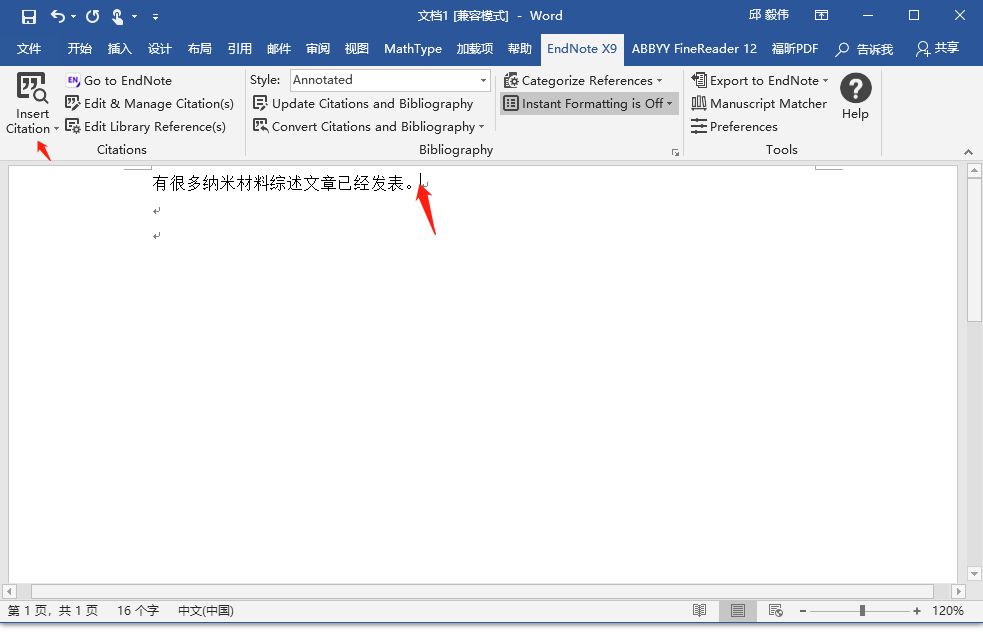 首先在EndNote中选中要插入的文献