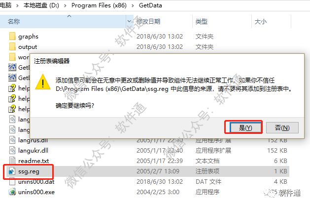 11. 双击ssg.reg,弹出提示框,点击“是”