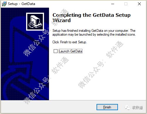 7. 取消选择Launch GetData,点击Finsh